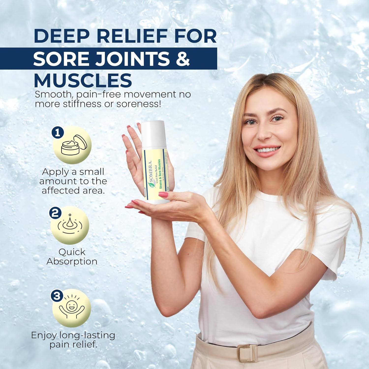 Sombra Cool Pain Relief Gel Cold Pain Relief for Swelling, Growing Pains, Soreness, Post-Workout, Vegan Formula Free of Artificial Fragrances, Dyes, NSAID, Wax, Petroleum, Alcohol - 3oz Roll-On