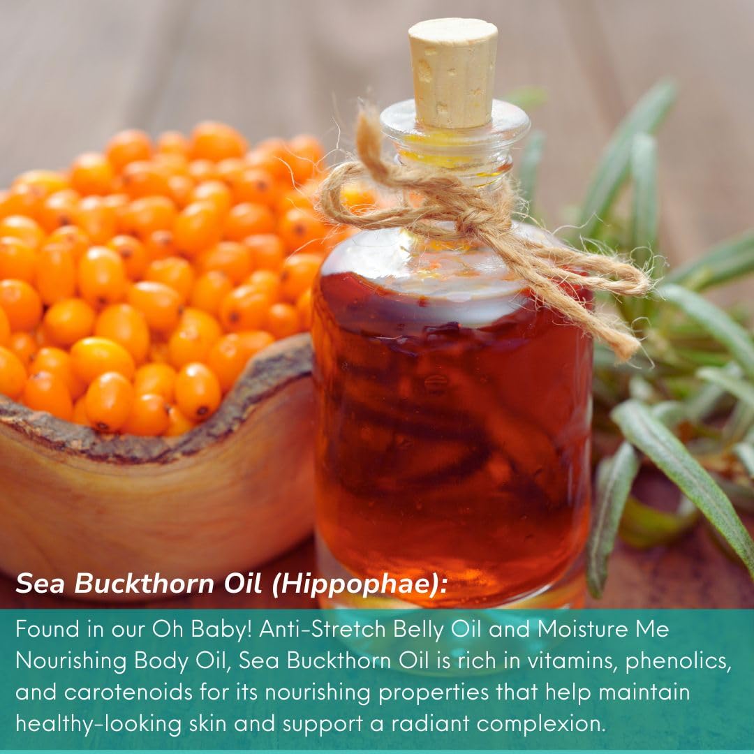 - PRODUCT SPECIFICATIONS: Package contains Oh Baby! Anti-Stretch Body Oil (2 fl. oz / 60 g), Youth Glow Hydrating Serum (1 fl. oz / 30 ml), Moisture Me Nourishing Body Oil (2 fl oz / 60ml), and Kissable Lips (.25 oz / 7 g). All products are free from fragrances, emulsifiers and petroleum based ingredients, Cruelty Free, Gluten Free, Non-GMO.