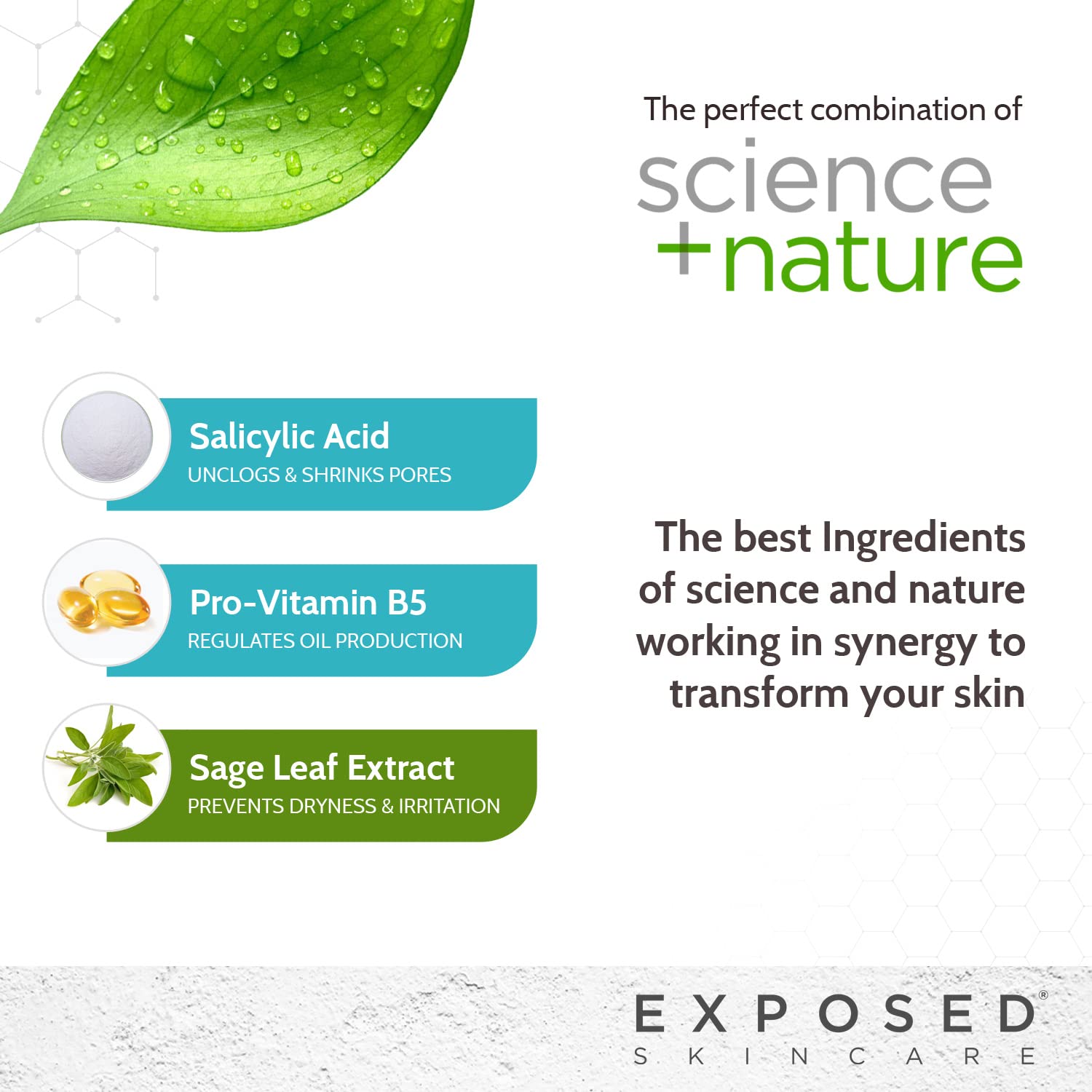 Exposed Skin Care Acne Facial Cleanser - Gentle Face Wash with Salicylic Acid for Acne Prone Skin - Pore Clarifying Acne Treatment for All Ages, Skin Types