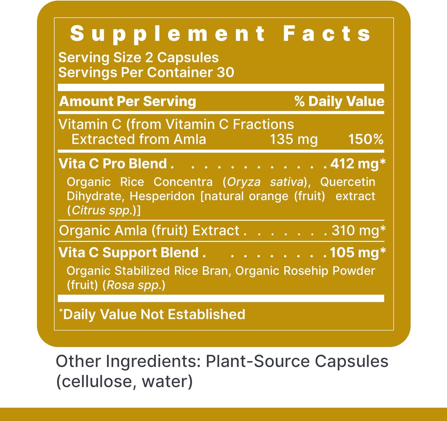 - RECOMMENDED DAILY USE: For optimal immune support, we recommend taking 2 capsules of our wholefood Vitamin C daily, or as suggested by a healthcare practitioner