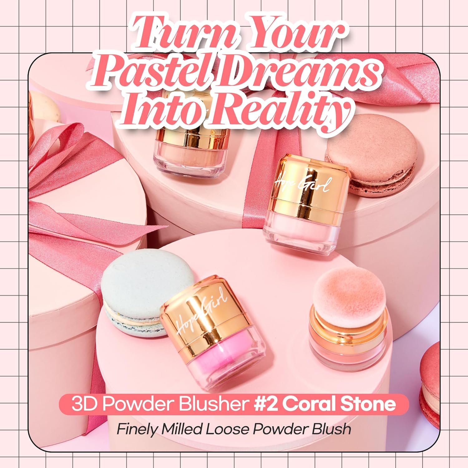 Hope Girl 3D Powder Blusher 0.17oz | Skin-Loving Korean Mini Blush for Cheeks and Eye Makeup w/Allantoin | K Beauty Cool Toned Vibrant Sunkissed Fine Powder Makeup Blush Cosmetics (#02 Coral Stone)