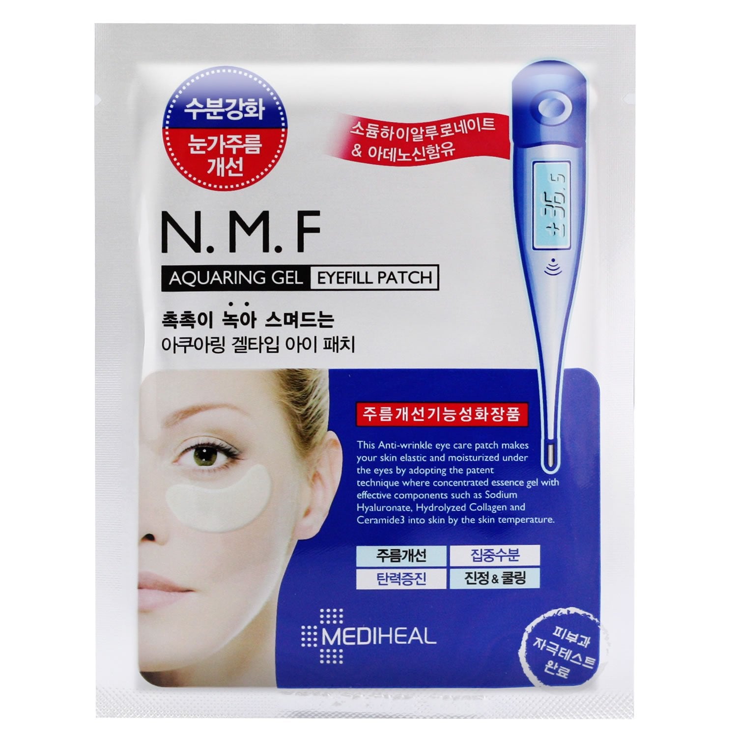 - REDUCES WRINKLES AND DARK CIRCLES: Donโt let your smile fade just because of a wrinkled eye contour or those puffy dark circles. Beauty Clinic Mediheal N.M.F Aquaring Gel Eye Fill Patch Mask hydrates and regenerate skin. It forms a moisture coating film and induces moist energy deep into the skin.