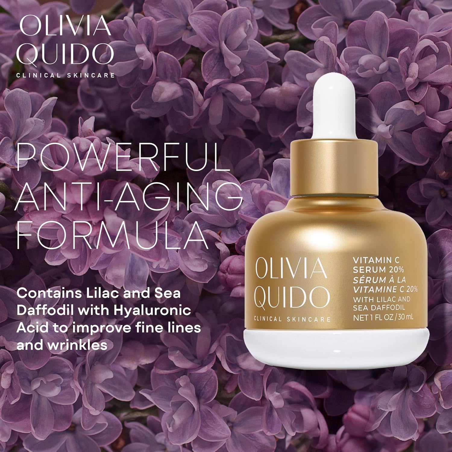 OLIVIA QUIDO Skincare Vitamin C Serum 20% with Lilac & Sea Daffodil 3.6oz | Hydrating, Skin-Brightening, & Anti-Aging | Vitamin C & Hyaluronic Acid Serum for the Face with Natural Botanicals