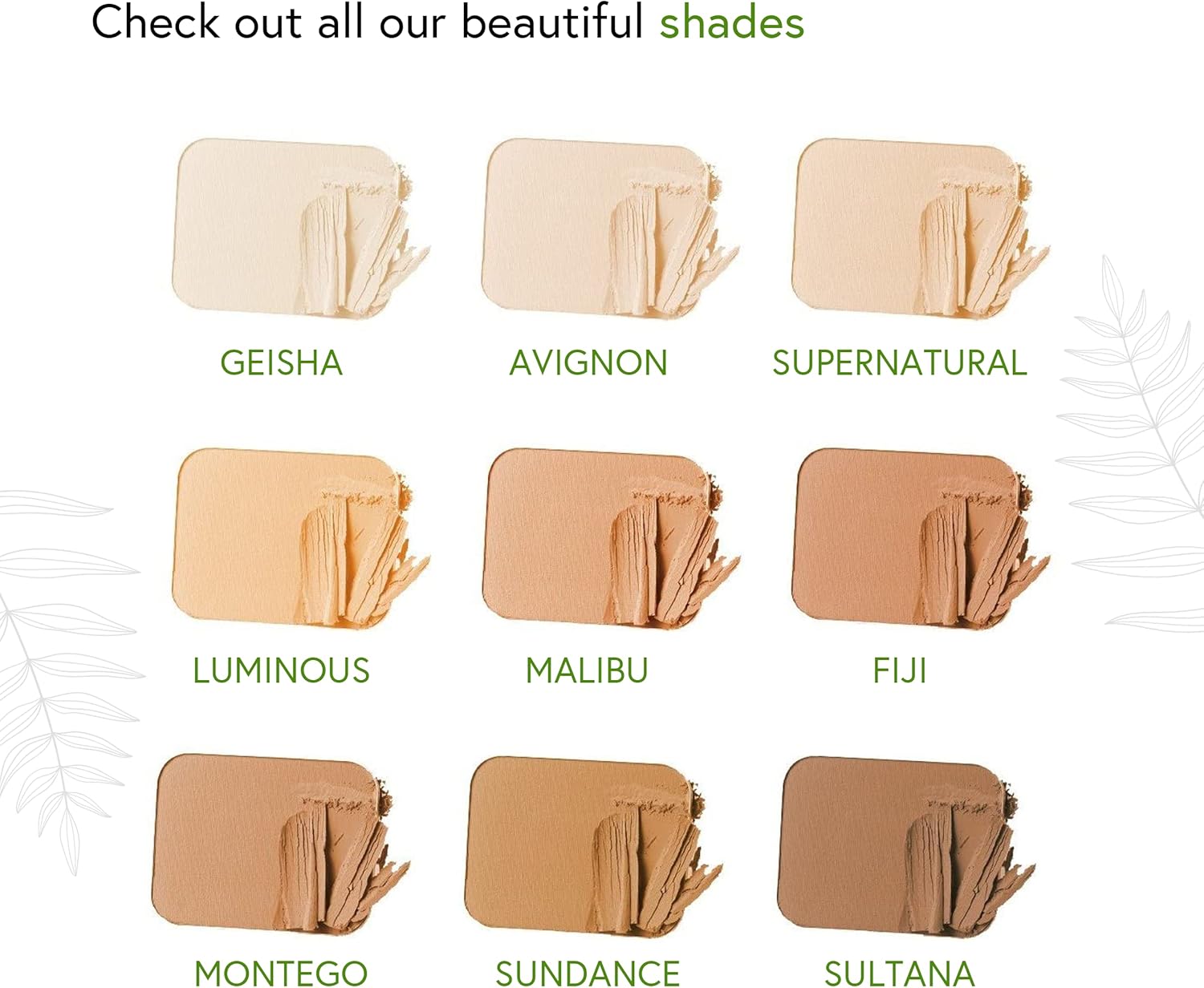 Honeybee Gardens Pressed Mineral Powder Foundation Refill, Sundance, Deep Tan/Mocha, Adjustable Coverage, Natural Finish, With Botanical Extracts And Vitamin E, 7.5g