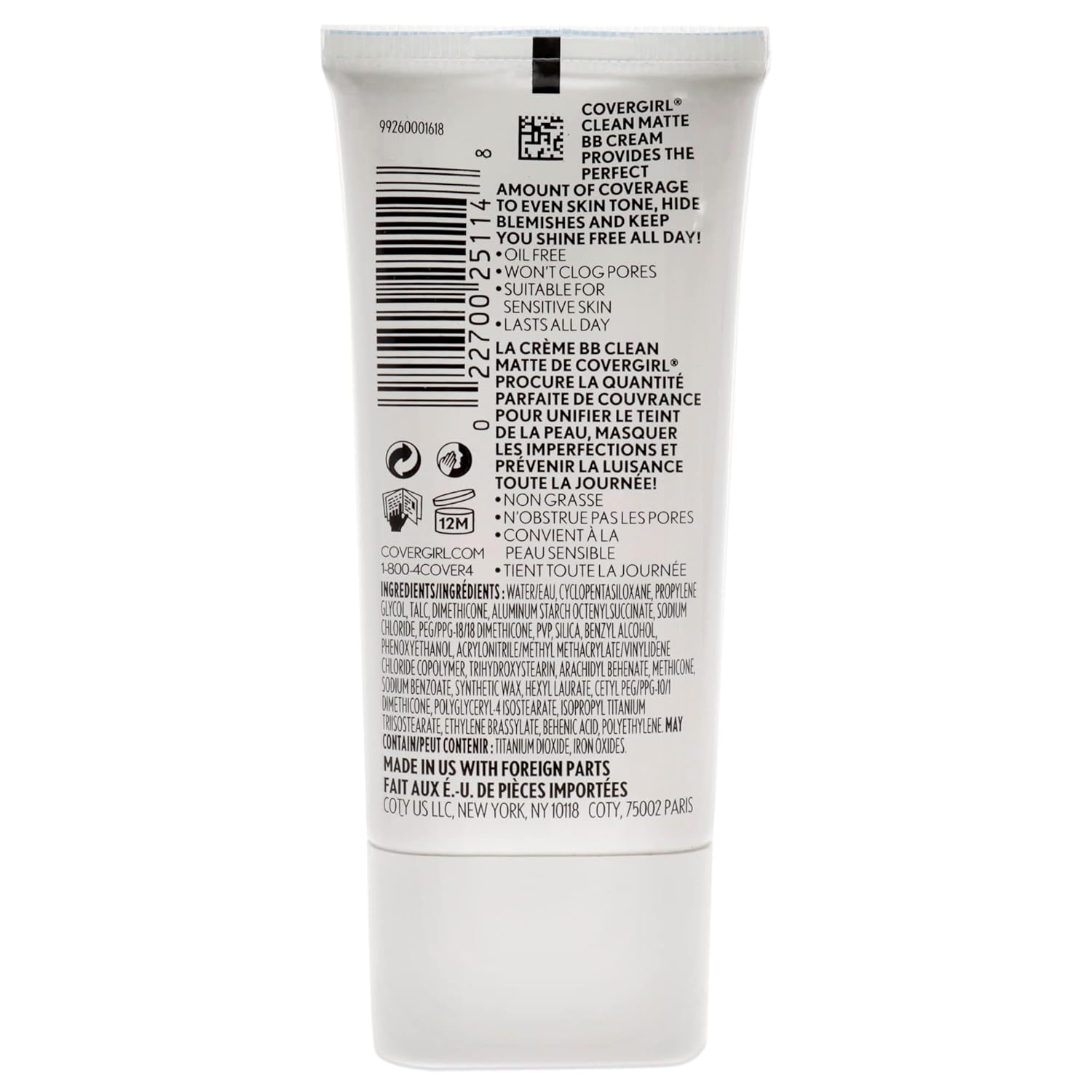 COVERGIRL - Clean Matte BB Cream, Oil-Free, Long-Lasting, Sensitive Skin, Lightweight, 100% Cruelty-Free