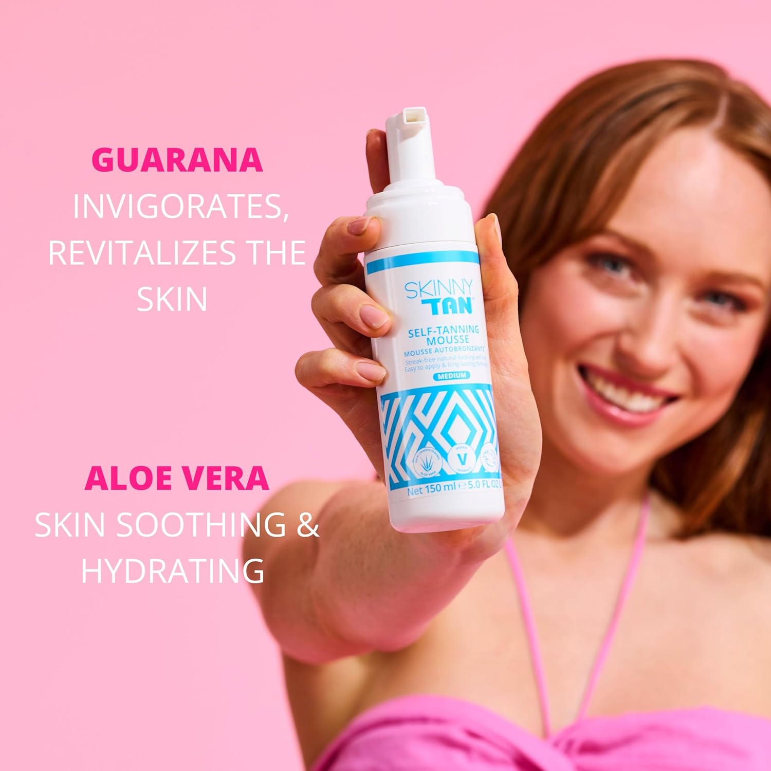 Skinny Tan Self-Tanning Mousse - Long-Lasting and Non-Drying Formula - Coconut and Vanilla Scent - Easy To Apply Luxurious, Foam Texture - Streak Free and Natural Looking Results - Medium - 5 oz