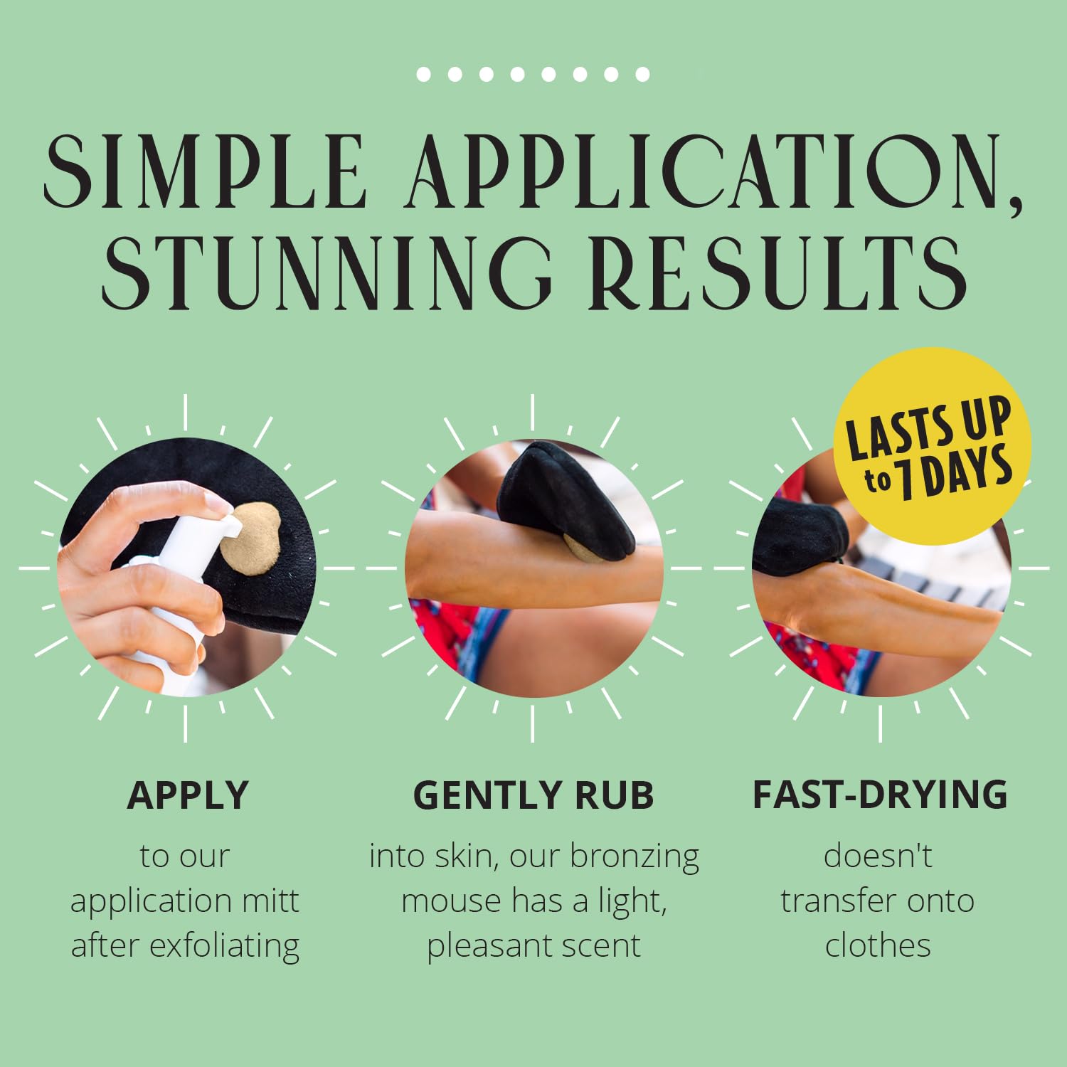 - Easy Tanning: Tan in minutes! Unlike a self tanning lotion, this fast-drying tanning foam dries quickly and is easy to apply; For optimal results, apply the instant tan with a Skinerals tanning mitt or pad for a tan that lasts up to 7 days