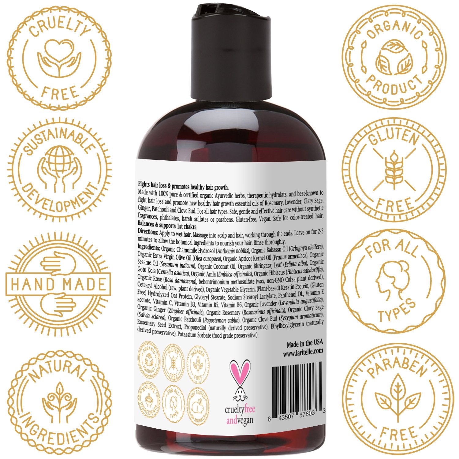 - โฟ Safe travels! ORGANIC CONDITIONER TO STOP HAIR LOSS & PROMOTE NEW HEALTHY HAIR GROWTH. Softens hair, nourishes the hair-shaft, rejuvenates hair follicles. Made with certified organic Babassu, Olive, Apricot Kernel oils and Ayurvedic herbs, therapeutic hydrolats, and best known to stop hair loss and promote new healthy hair growth essential oils of Rosemary, Lavender, Clary Sage, Ginger, Patchouli and Clove Bud.