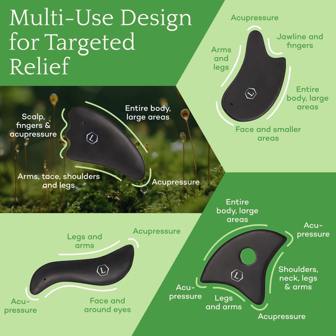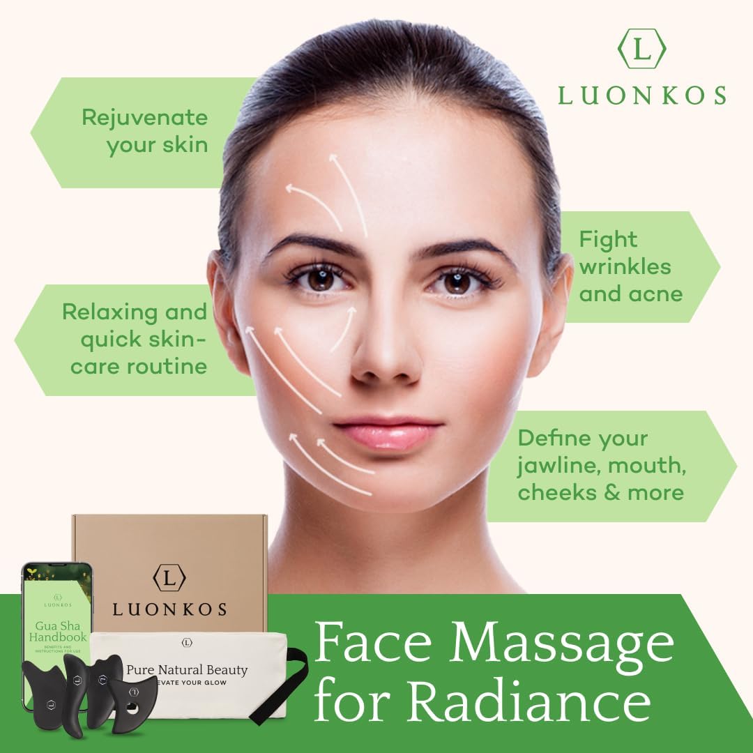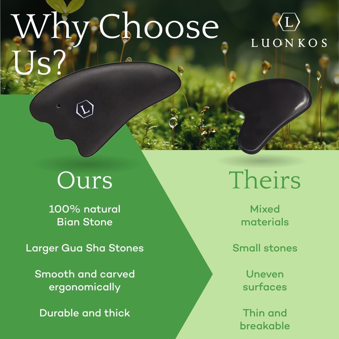 - Nature-Inspired Beauty: Embrace Finnish craftsmanship with the LUONKOS Gua Sha Tools Set, crafted from authentic Bian Stone. These face massager tool and gua sha body tool support a holistic skincare routine with versatile designs for comprehensive care