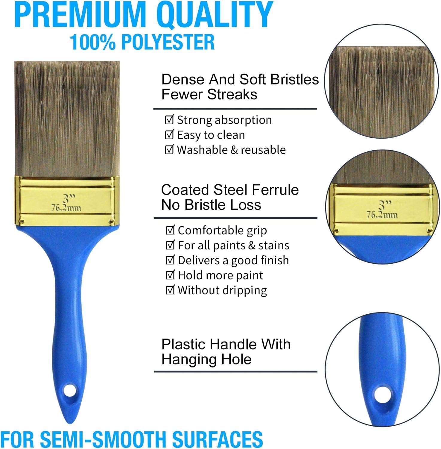 - These professional paint brushes make painting more perfect and efficient. The thickened 0.9-inch dense polyester bristles easily absorb more paint, reduce dripping, and create a smoother surface and more even painting.