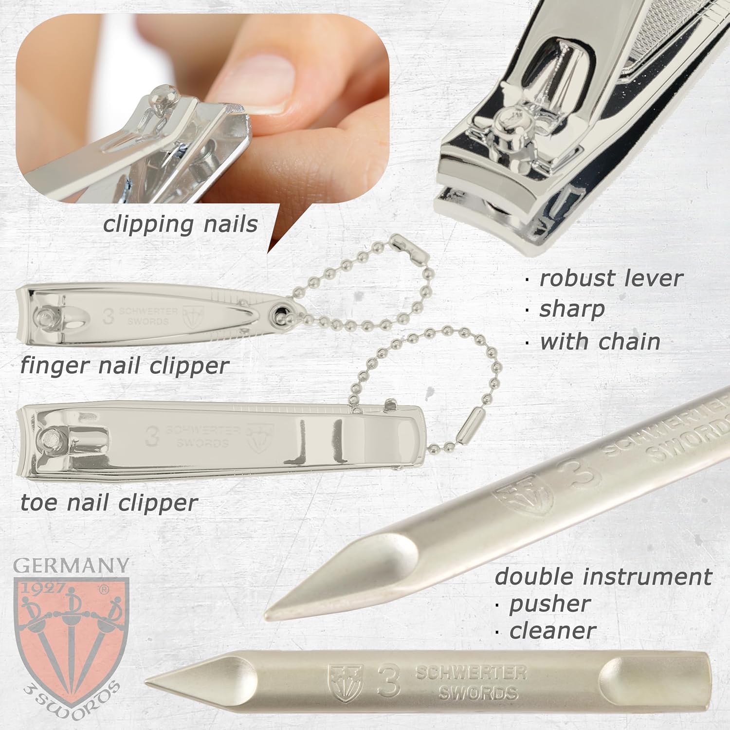 - NAIL CARE KIT from 3 Swords Germany with professional manicure and pedicure tools. Our sets for home and travel use convince trough highest levels of quality, modern design, durability and German engineering combined with a first class customer service.