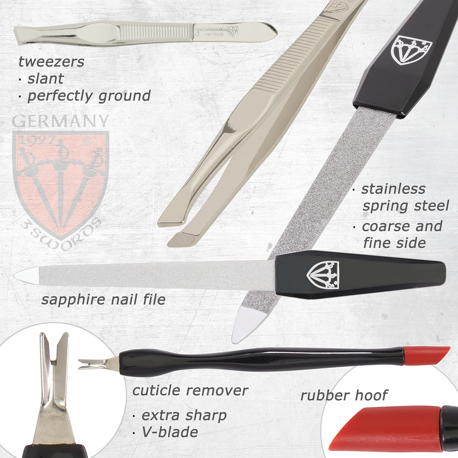 3 Swords Germany – brand quality 8 piece manicure pedicure grooming kit set for professional nail care with synthetic leather case ostrich black - Made in Germany