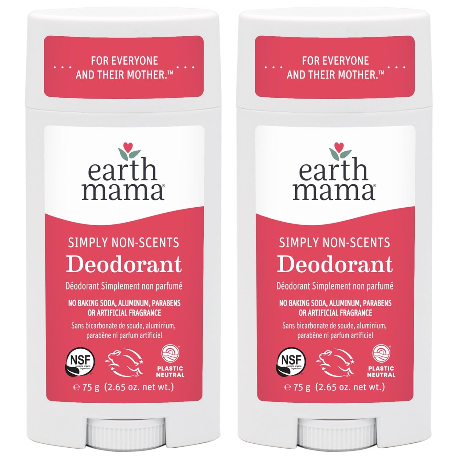 Earth Mama Simply Non-Scents Deodorant | Fragrance-free + Safe for Sensitive Skin, Pregnancy & Breastfeeding, Contains Organic Calendula and Coconut Oil, No Baking Soda or Aluminum, 2.65-Oz (2-Pack)