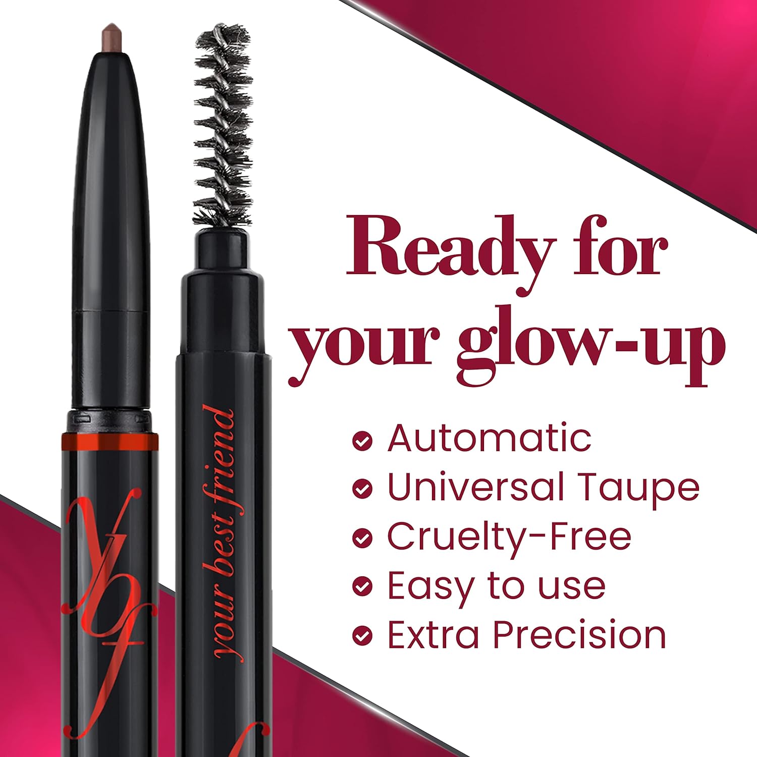ybf Beauty Eyebrow Pencil - Universal Automatic Brow Pencil With Spoolie Brush - Perfect Eyebrow Makeup Shaper and Filler For Women - All Hair Colors & Skin Tones - Taupe Eyebrow Liner - 0.005 Oz