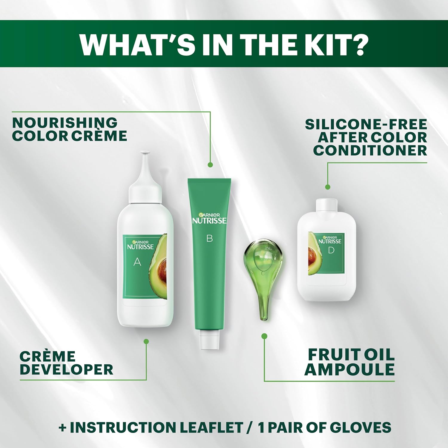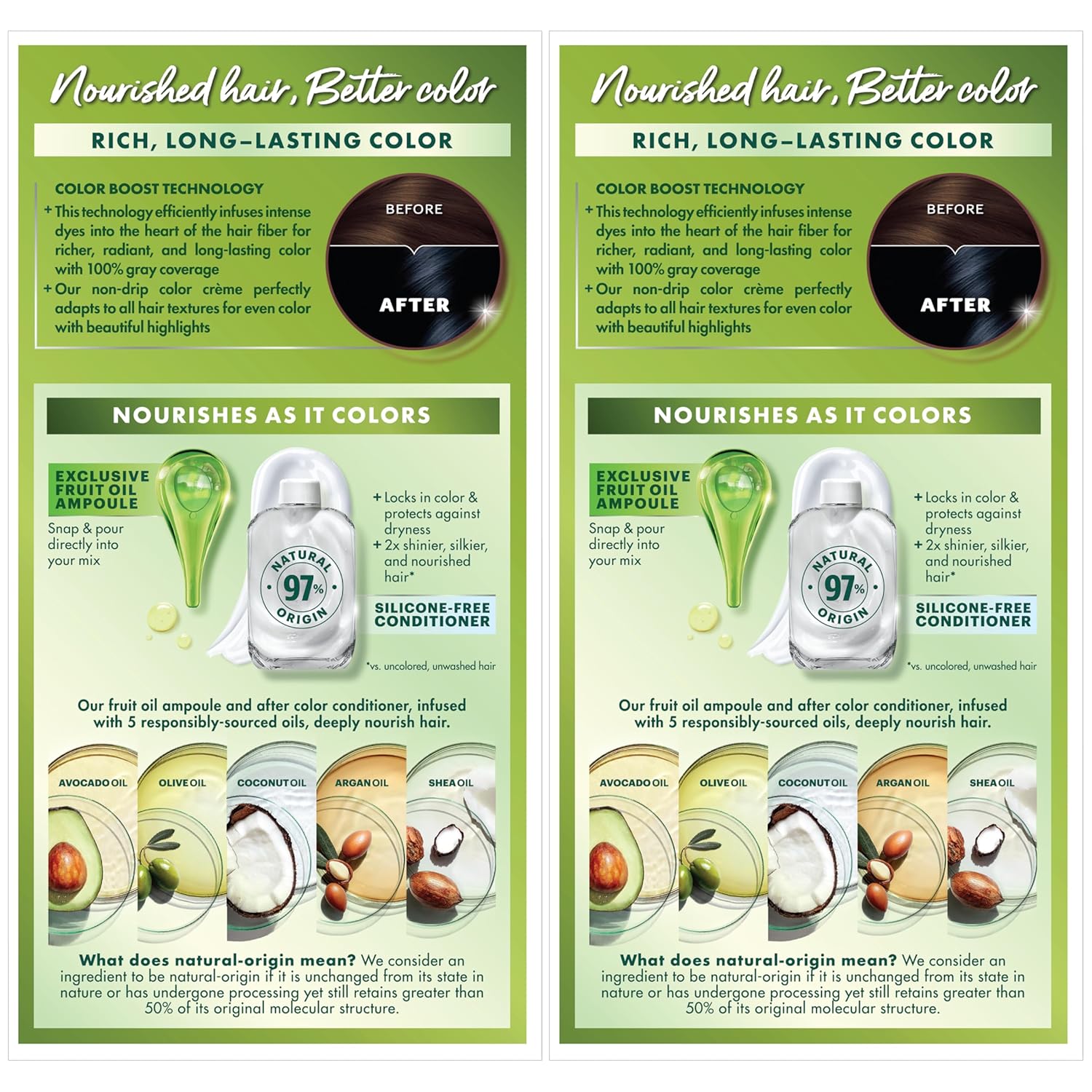 - Hair Dye Kit: The only hair color with a separate fruit oil ampoule that you snap & pour directly into the mix; Follow hair dye with our after color hair conditioner, infused with a blend of 5 fruit oils: avocado, olive, shea, argan & coconut oil