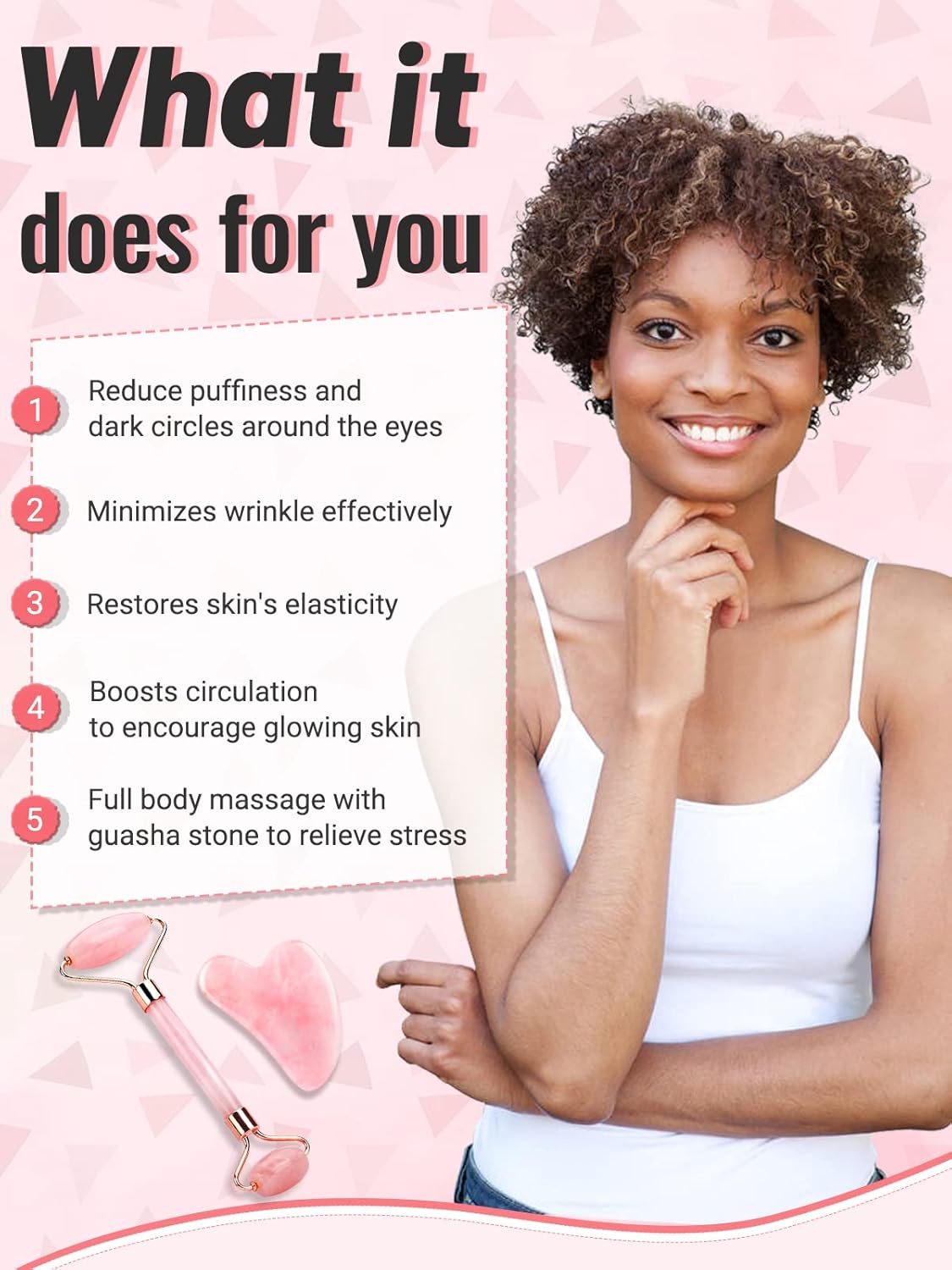 - β A Meaningful & Lovely Gift - Give the special one a gift of love. The pink jade roller set comes in a beautifully designed package, which can be a great holiday gift for women in different festivals, like Christmas, Birthday, Women's Day, New Year,Valentine's Day,etc.