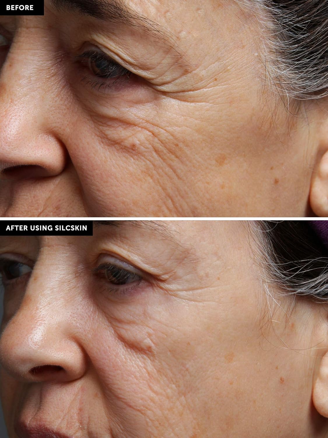 - Smooth away fine lines and wrinkles with the SilcSkin Full Face Set! These self-adhesive pads gently exfoliate the skin of your forehead, under the eyes, and around the mouth, helping with damage caused by the sun, aging, and sleeping on your side. After two to four weeks of nightly use, you can transition to a lighter schedule, as the effects become more lasting.