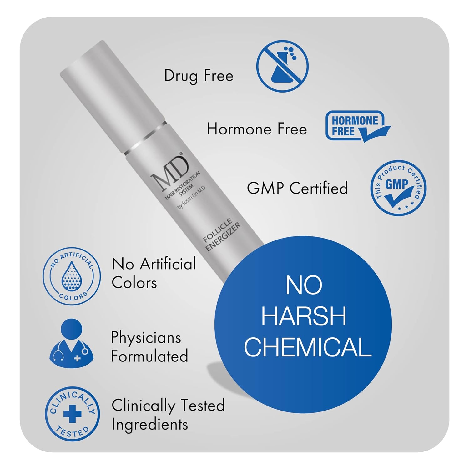 - Helps with hair loss: The hair restoration follicle energizer from MD is your one-stop solution for issues like hair loss, thinning, and accelerated baldness. The hair growth serum improves the appearance of thinning hair and shows results in as little as four weeks.