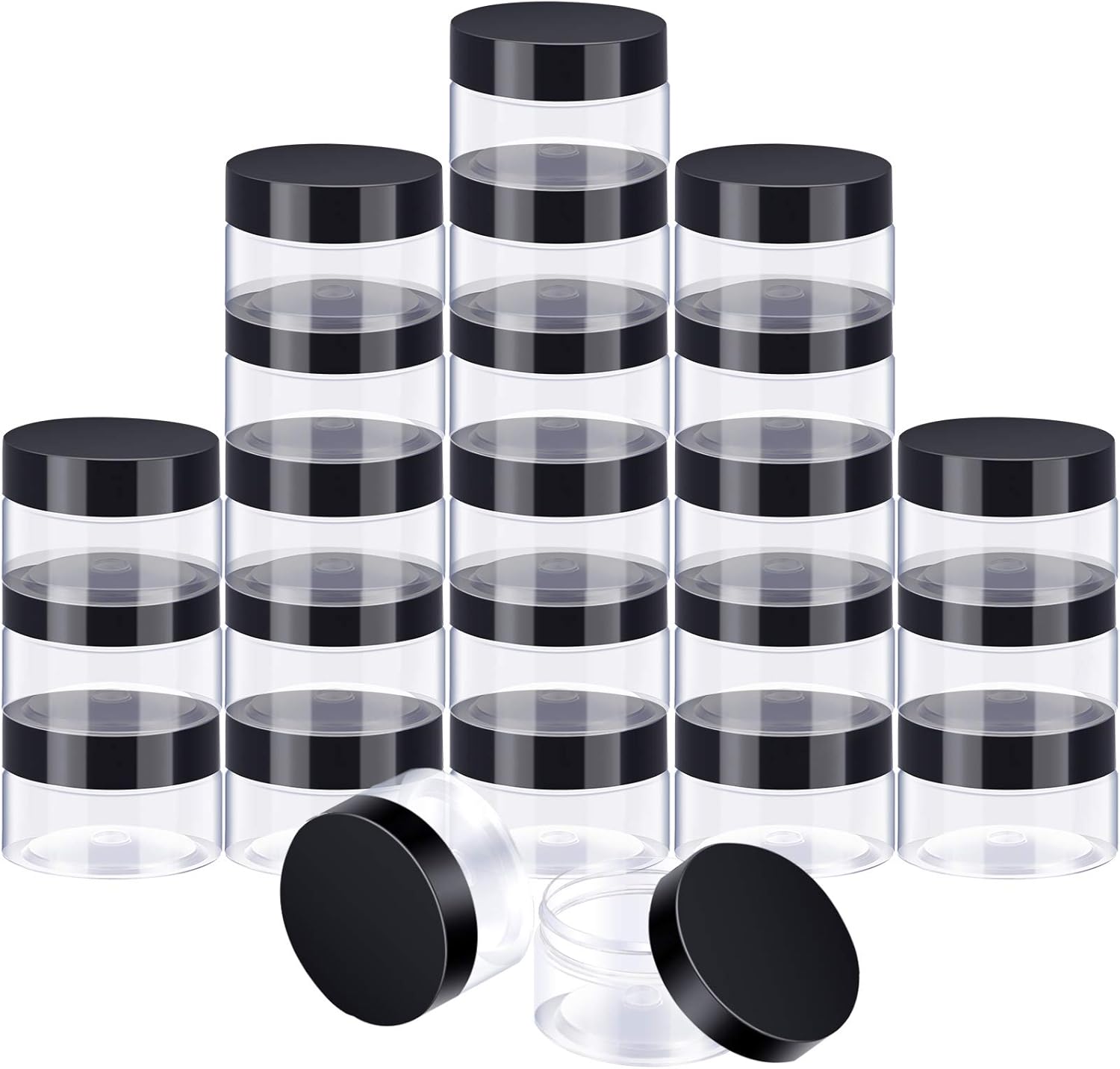 SATINIOR 24 Pieces Empty Clear Plastic Jars with Lids Round Storage Containers Wide-Mouth for Beauty Product Cosmetic Cream Lotion Liquid Butter Craft and Food (Black Lid, 4 oz)