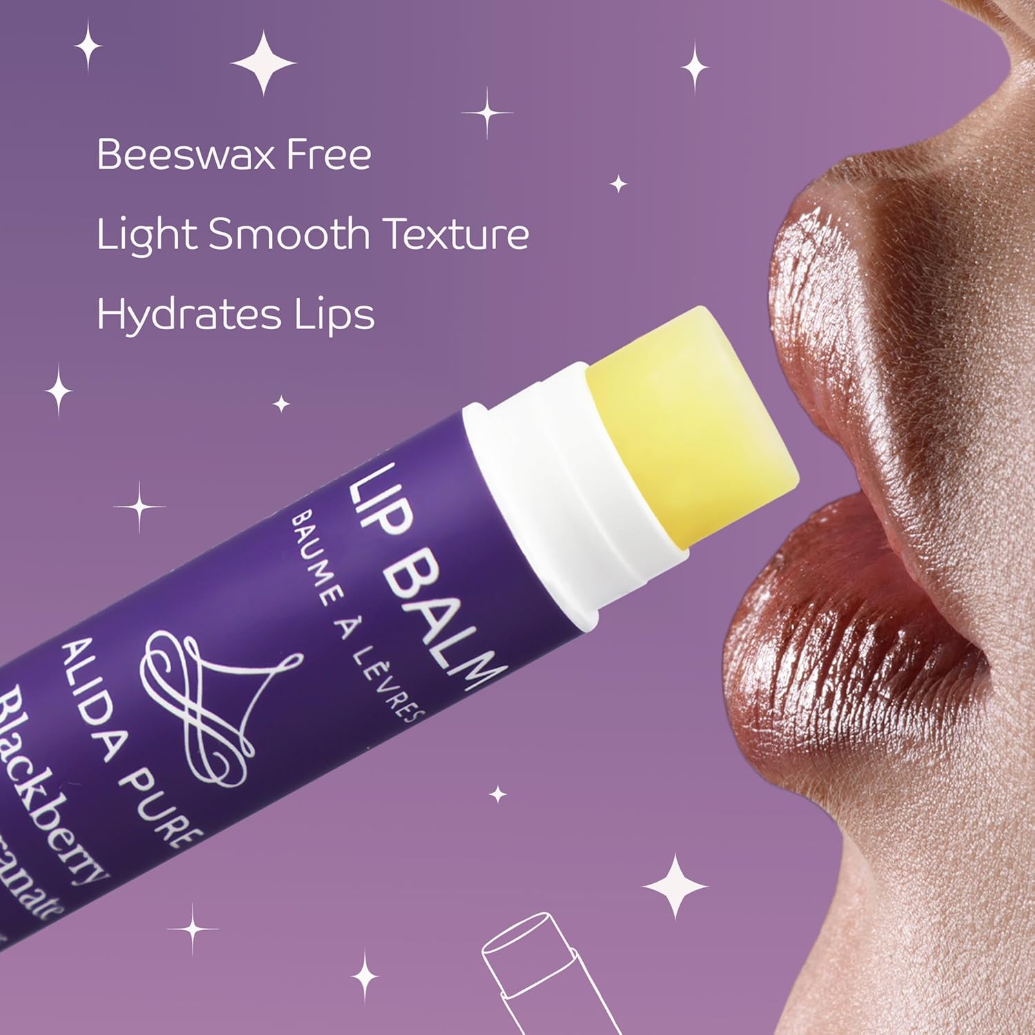 - ALIDA PURE Blackberry Pomegranate Lip Balm is made with cruelty free, hypoallergenic, organic, and natural oils, that protect, and soothe. The nourishing, and moisturizing, Blackberry Pomegranate Lip Balm Collection includes three .15-ounce, lip balm tubes of Blackberry Pomegranate lip balm. Thoughtfully packaged with biodegradable materials that support the environment.