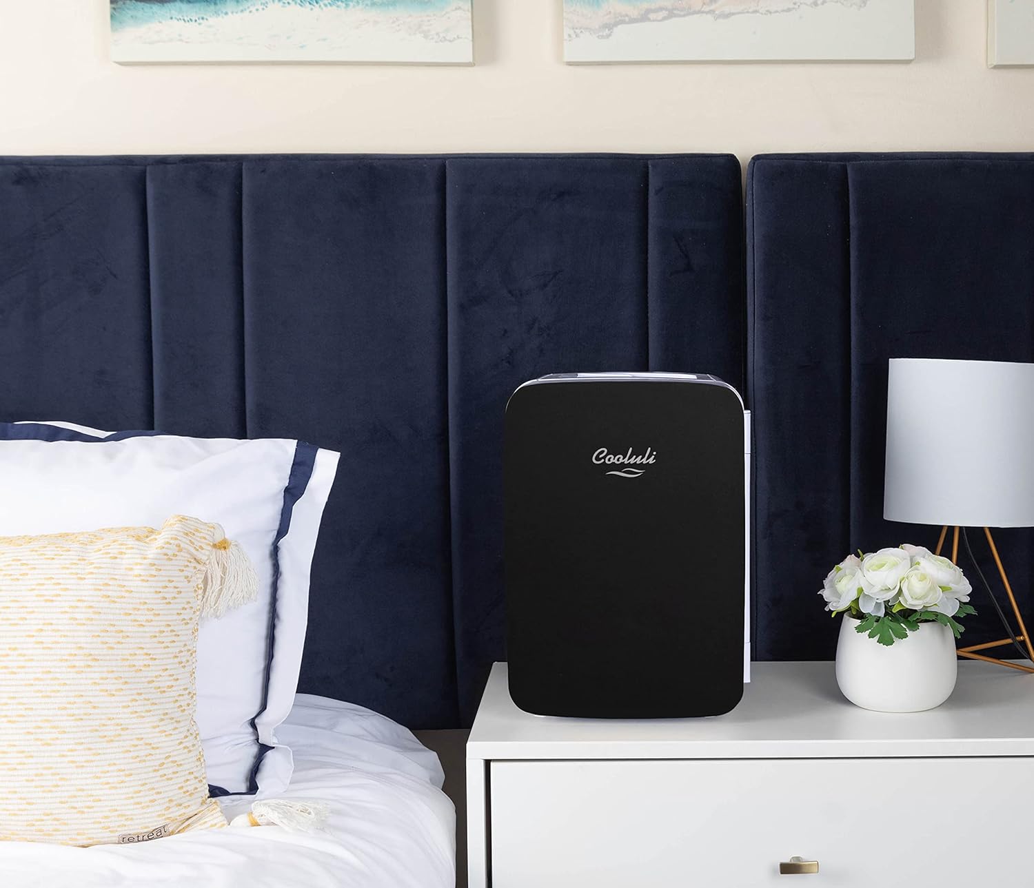 Cooluli 10L Mini Fridge for Bedroom, Car, Office Desk & Dorm - Portable Thermoelectric Cooler & Warmer for Food, Drinks, Skincare - AC/DC Refrigerator with Glass Front, Black