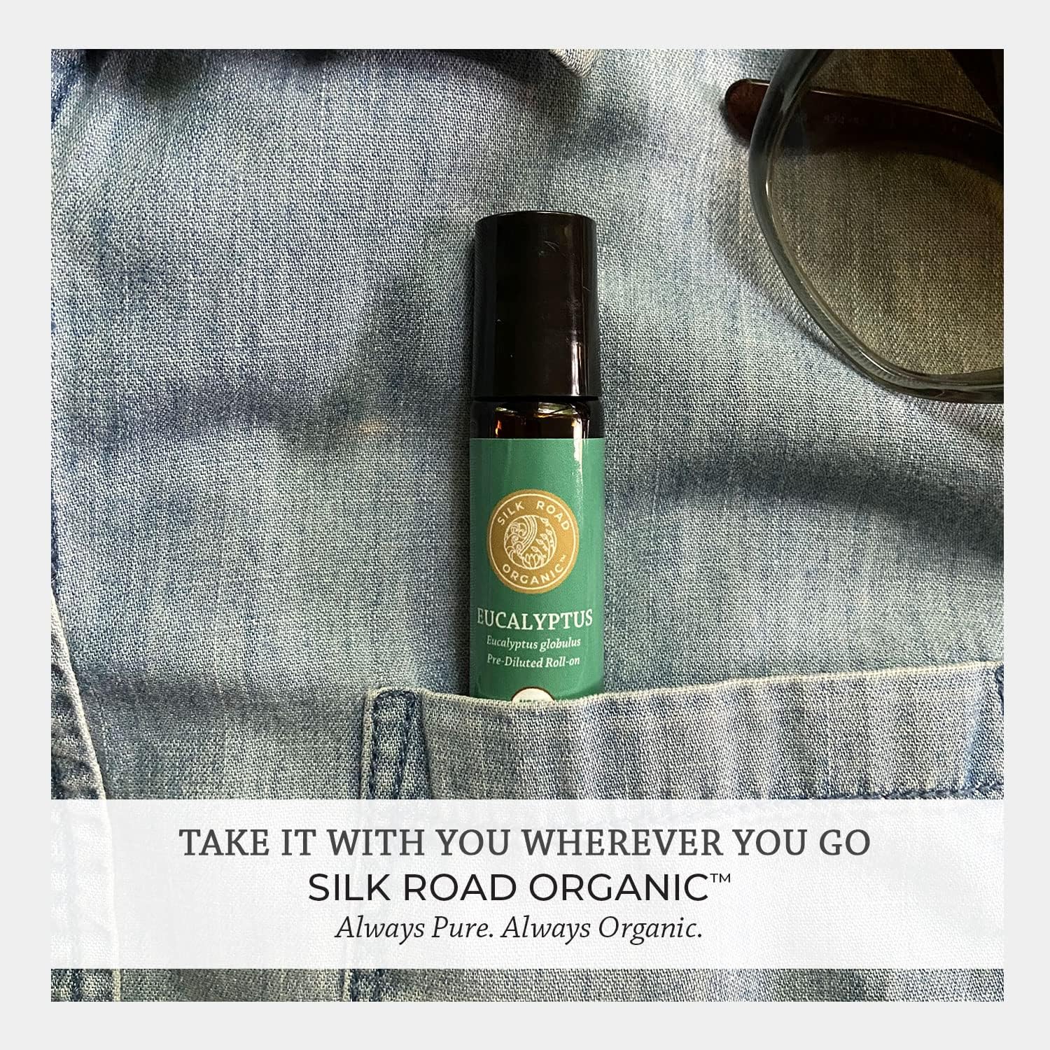 Silk Road Organic Eucalyptus Essential Oil Roll On, 100% Pure USDA Certified - Respiratory Health, Colds, Cough, Sinus & Allergy Congestion - 10 ml Roller - Always Pure, Always Organic