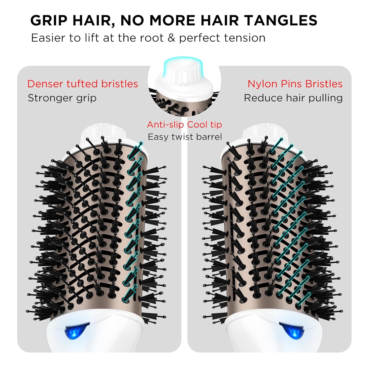 - 【Professional 4 In 1 Function】: In addition to hairdryer and curler brush, our oval brush hair dryer also straightener and brush. Suitable for all ages and hair types, like long hair, curls. Besides, one step hair dryer & styler is designed with Nylon Pin & Tufted Bristles for easy detangle & better grip of your hair. The ergonomic handle is designed for maximum comfort and ease of use during styling.