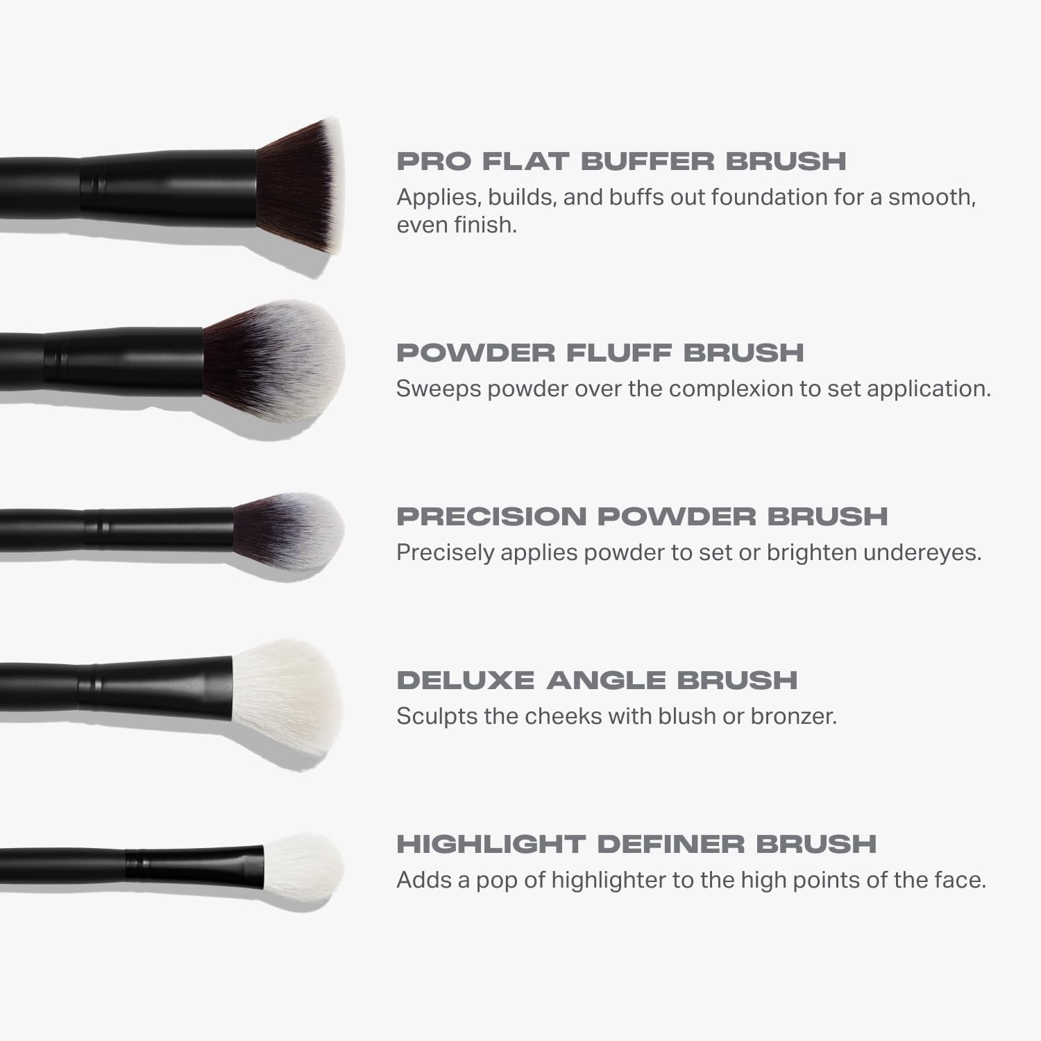 - 5 Piece Collection - This travel makeup brush set has everything you need for complexion perfection, from buffed-out foundation to flawless contour and everything in between.