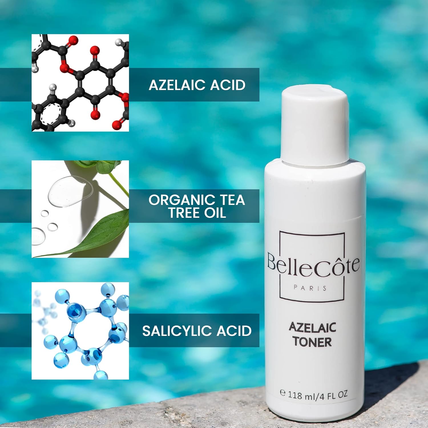 - {๐๐ก๐ซ๐ข๐ง๐ค๐ฌ ๐๐จ๐ซ๐๐ฌ}: BelleCรดte Paris brings you an exceptional skin care product that not only shrinks your pores but also aids in rosacea treatment for face, hormonal breakouts and cystic spots. Azelaic toner is a highly absorbent facial toner & pore minimizer with 10% Azelaic and 2% salicylic acid that leaves your skin soft and smooth.