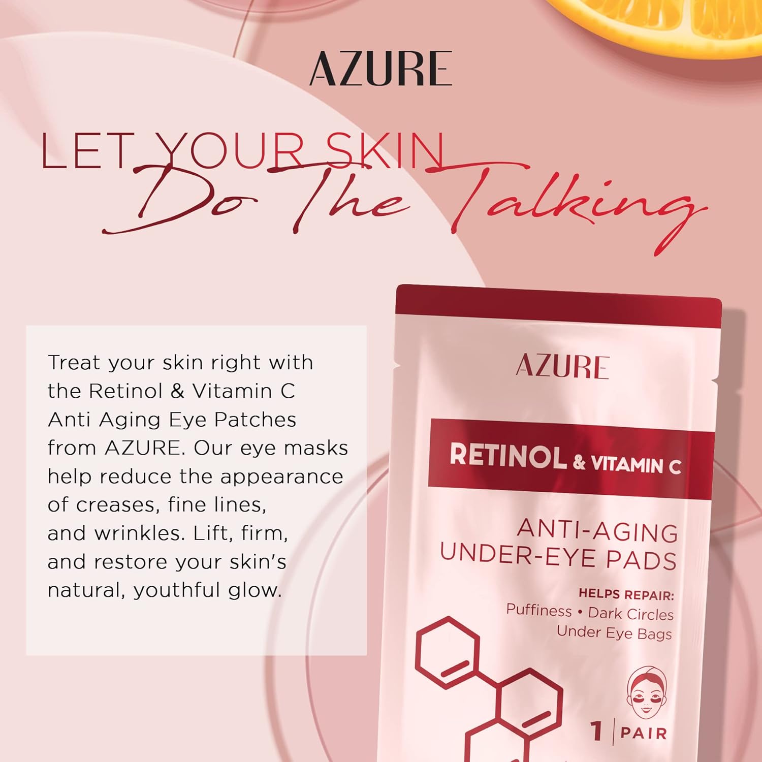 AZURE Retinol & Vitamin C Anti Aging Under Eye Pads - Hydrating & Refreshing Eye Mask Patches - Reduces Fine Lines, Wrinkles, Dark Circles & Puffiness - Skin Care Made in Korea - 5 Pairs
