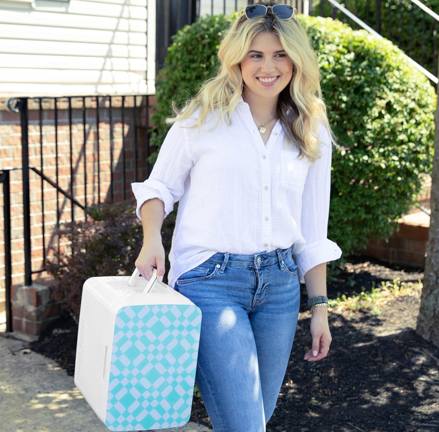 Cooluli 10L Mini Fridge for Bedroom - Car, Office Desk & Dorm Room - 12v Portable Cooler & Warmer for Food, Drinks, Skincare, Beauty & Makeup - AC/DC Small Refrigerator with Glass Front, Green Pattern