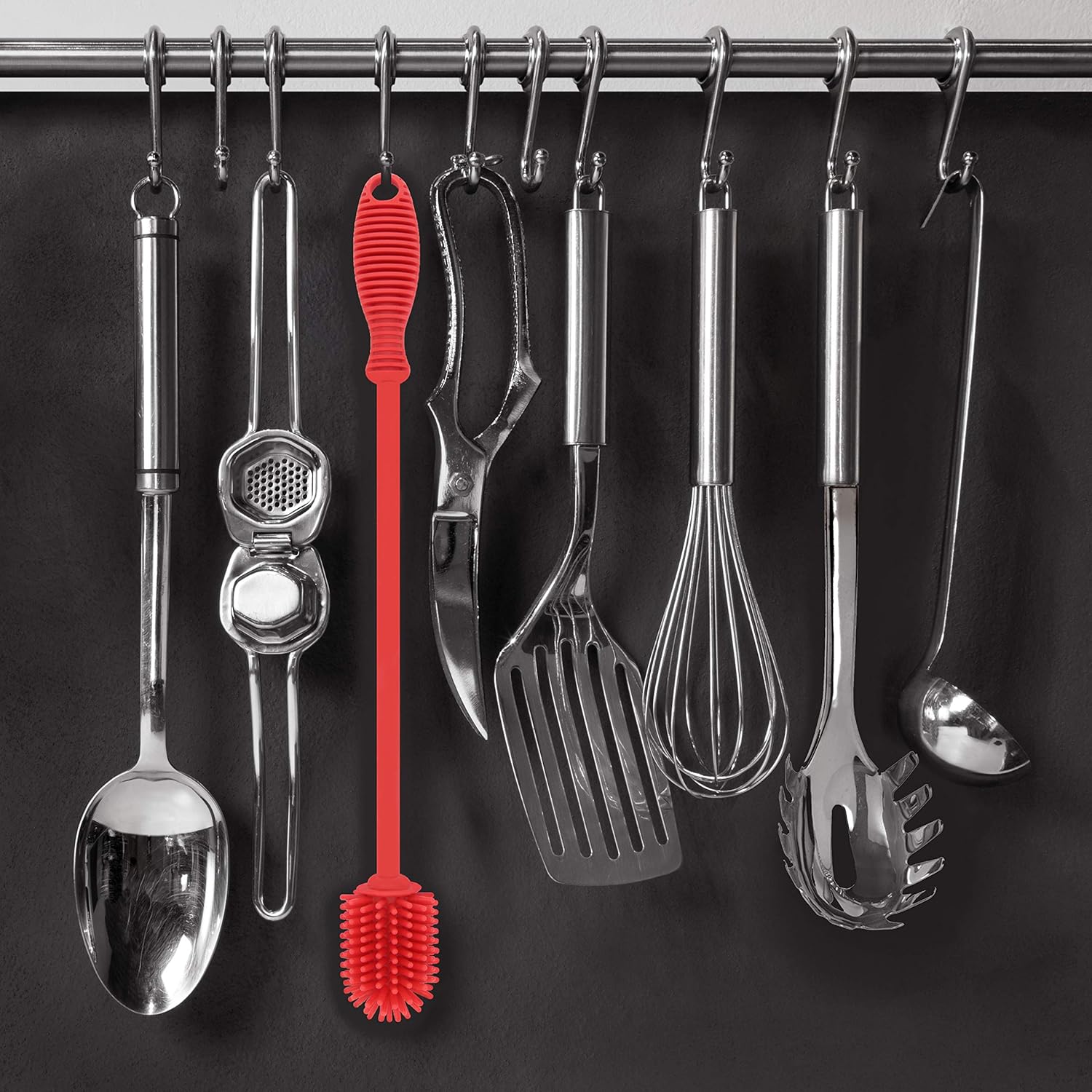 - NO MORE SCRATCHES: The easy-clean, non-scratching silicone bristles of our 12.5” long bottle cleaning brush are tough on gunk, yet gentle enough to leave your favorite vase, glass water bottle, pitcher, blender and delicate glassware clean and scratch-free.
