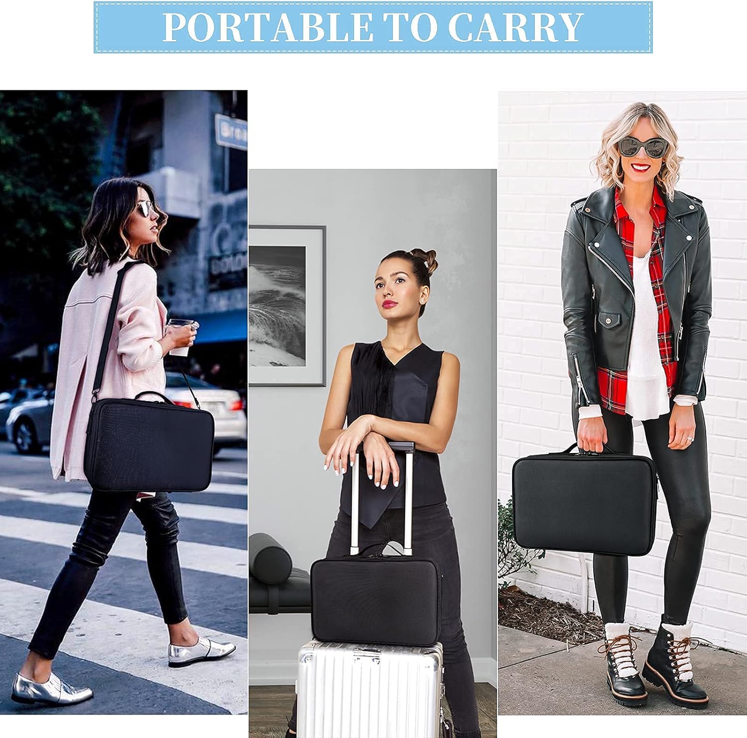 JOURMON Travel Makeup Case 3 Layers Makeup Train Case Portable Makeup Bag Organizer Portable Artist Storage Bag with Adjustable Dividers and Shoulder Strap(Black, M)