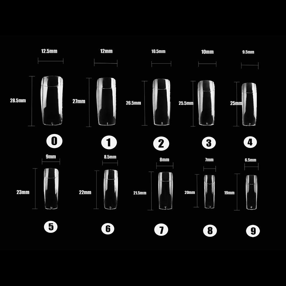 - Half-covered false nail tips, 500pcs nail tips, 10 different sizes, stored in numbered case with 10 small grid.