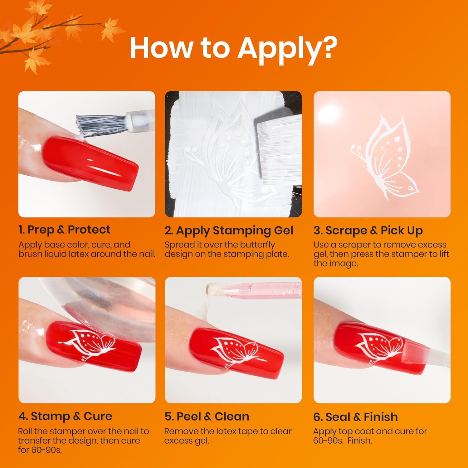 - Using Step: 1. Apply to areas where you want free of polish. 2. Allow to dry for 1-2 minutes until it turns clear. (This step is crucial, otherwise it will affect your experience) 3.Create your desired nail art style(stamping, gradient, marbling or etc.) 4. Rub the edge of Latex Tape with your finger or tweezers and peel it off.