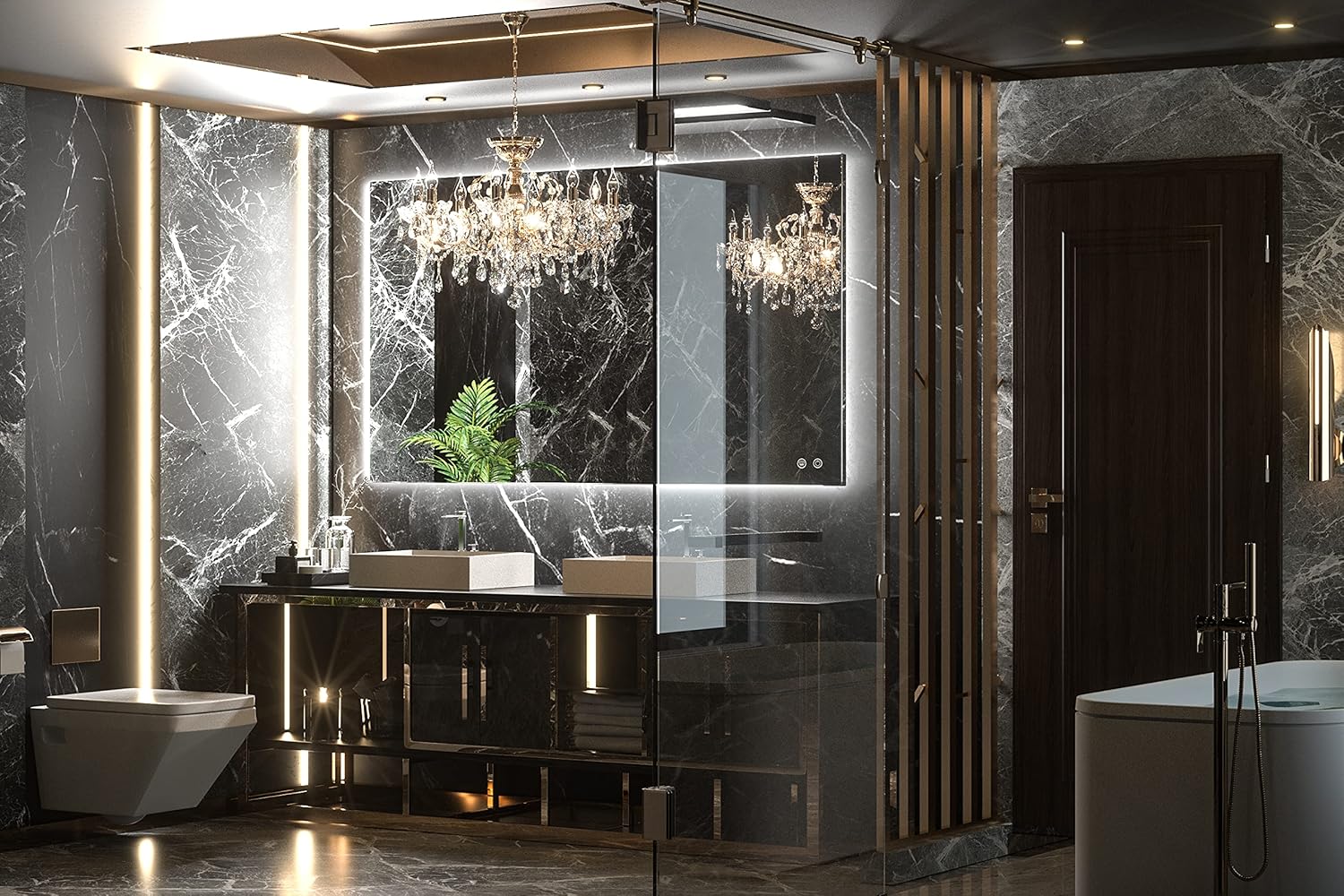 TETOTE 40 x 24 LED Backlit Vanity Mirror Bathroom,3Color White/Warm/Natural,Anti-Fog Lighted Mirror,Dimmable,Wall Mounted