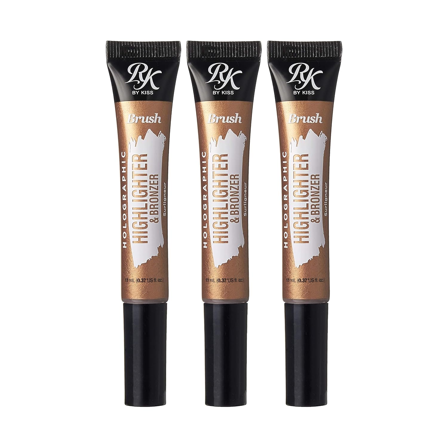 Ruby Kisses HD Brush Concealer & Foundation, Full Coverage, Color Correcting, Highlight, Contour 3 Pack (Rich Gold Bronzer)