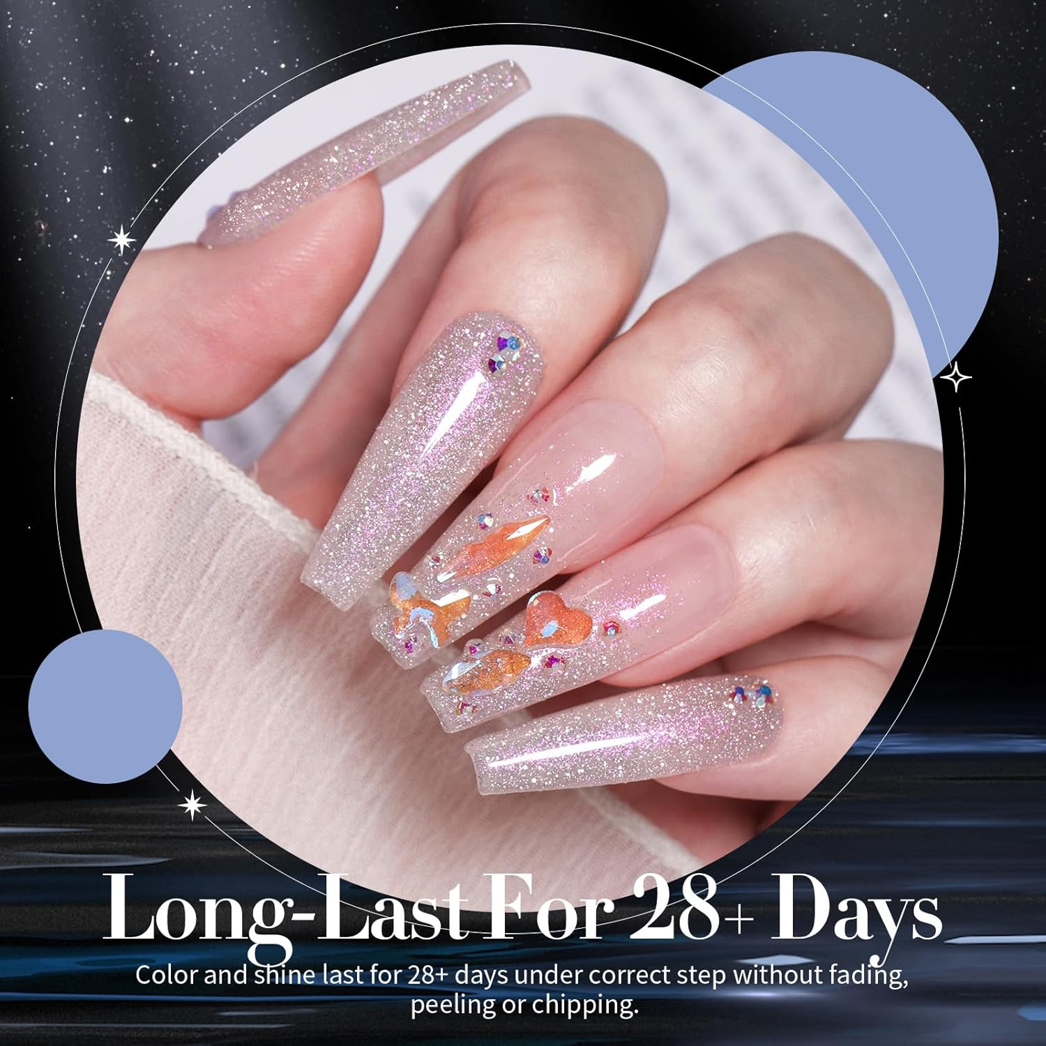 - PACKAGE CONTENTS:6 Bottles 7ml reflective gel polish.In flash they are reflective and out of flash depending on the lights,the lights reflect and show like a billion tiny stars and it looks so cool! Delicately balanced with a precise touch of holographic for some extra personality in the sun and light!Two charming effect natural light normal effect and flashing disco Effect.Not only suitable for daily life but also for parties attractive and different effects will surprise you.