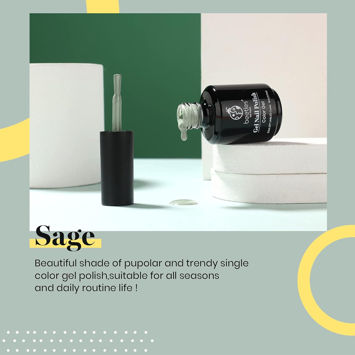 beetles Gel Polish Sage Green Gel Nail Polish 1 PCS 15ml Nail Gel Polish Soak Off UV LED Nail Lamp Needed Gel Polish Nail Art Manicure Salon DIY Home 0.5Oz