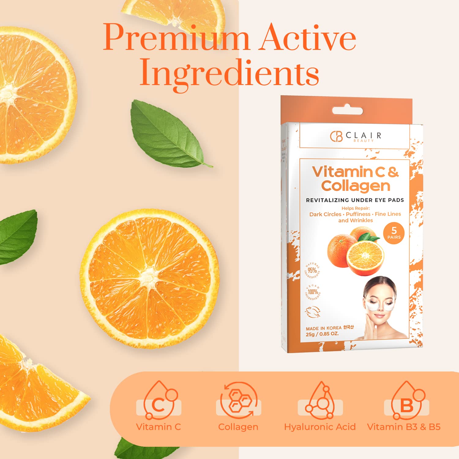 - REVIVE AND BRIGHTEN: Our 5 Under Eye Pads with Vitamin C & Collagen revive tired eyes, reducing dark circles, puffiness, and fine lines for a brighter, rejuvenated appearance.