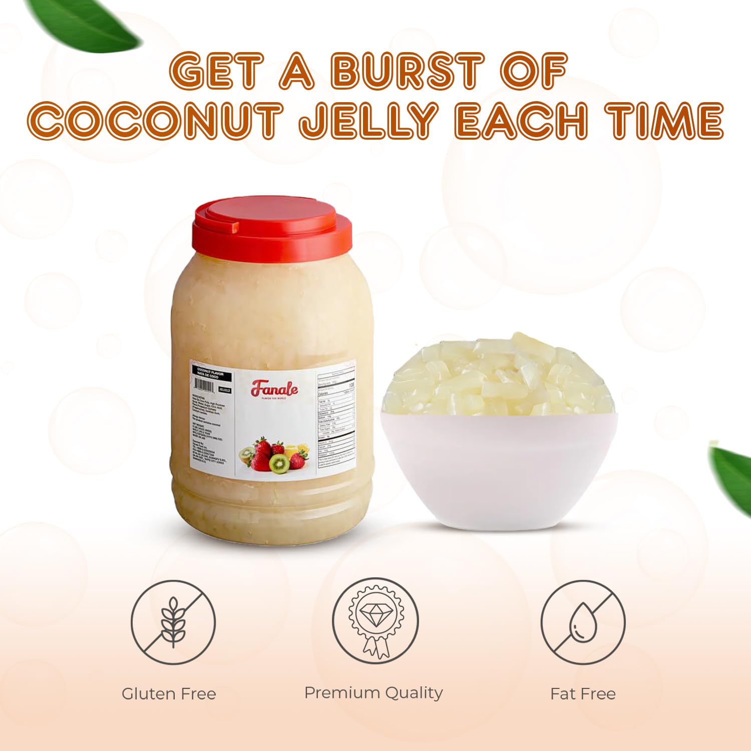 New Fanale Coconut Jelly Topping nata de coco for Boba Tea | Ice Cream | Yogurt | Smoothie | Milk Tea | Desserts (Coconut, 8.3 lb)