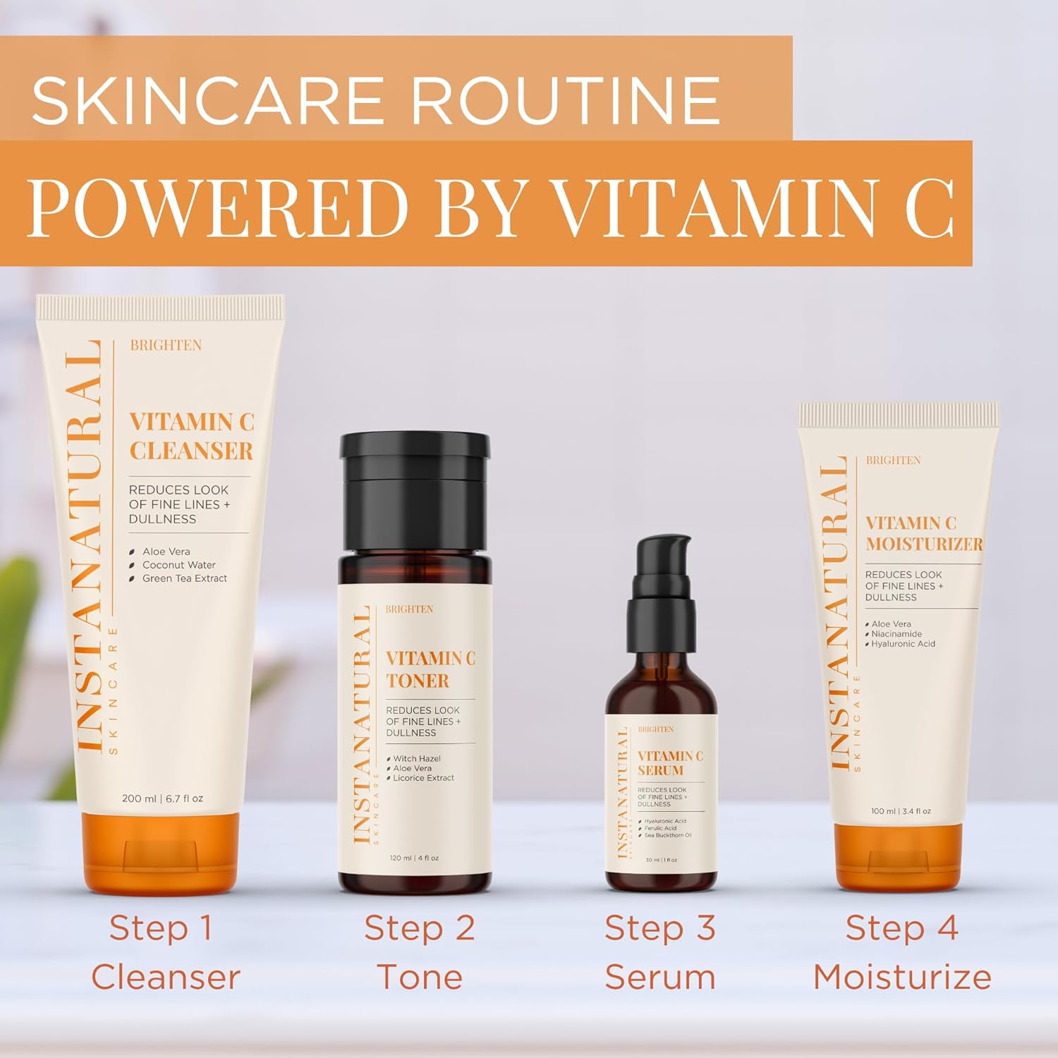 - Your Skincare Routine, Powered by Vitamin C: Pair our cleanser and serum with our Vitamin C Toner and Moisturizer for an effective skincare regimen