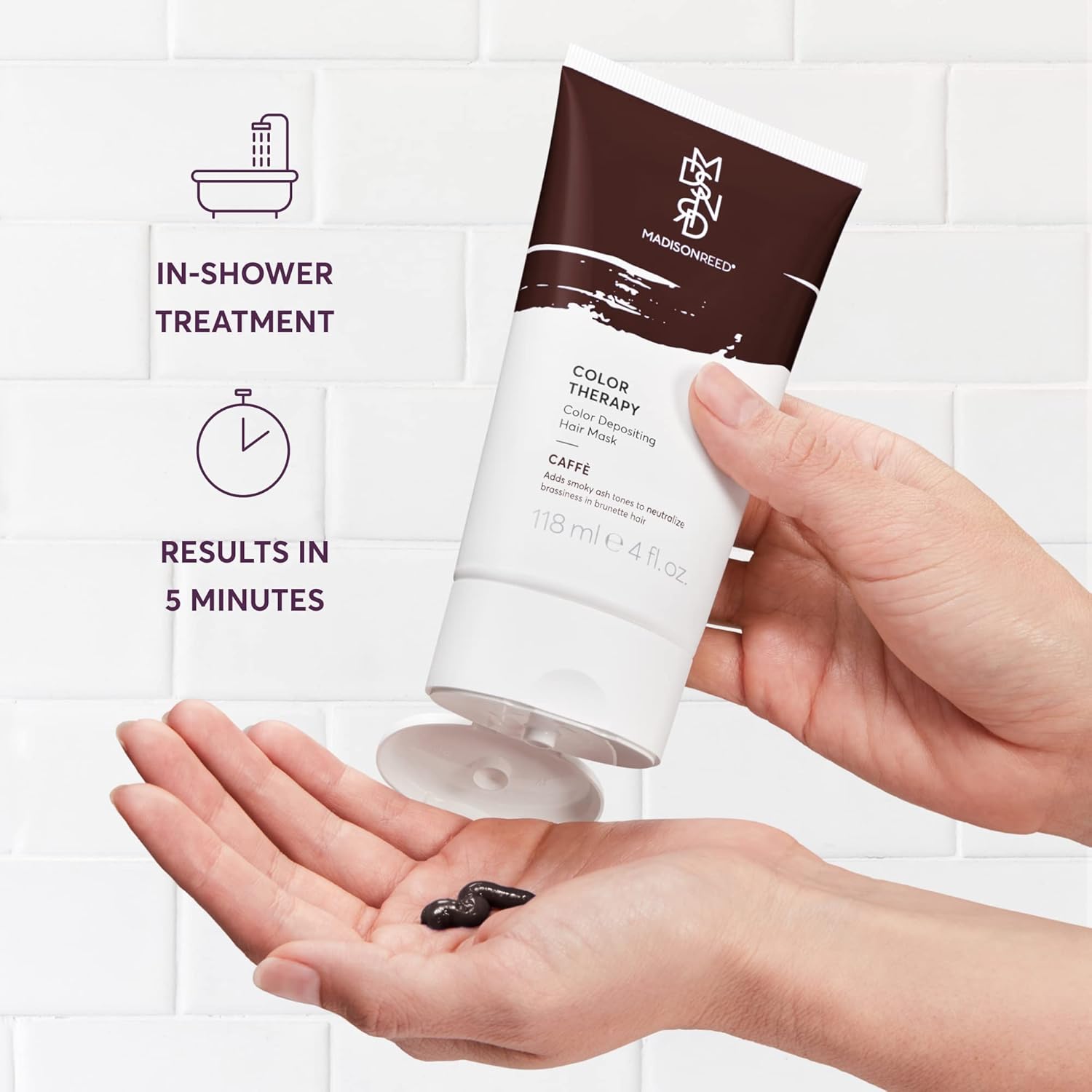 - COLOR DEPOSITING HAIR MASK: Madison Reed Color Therapy in CaffΓ© works best on light to dark brown hair, as well as rich chocolate brunettes, and adds smoky ash tones to neutralize brassiness and unwanted orange & red tones. Not intended for gray coverage.