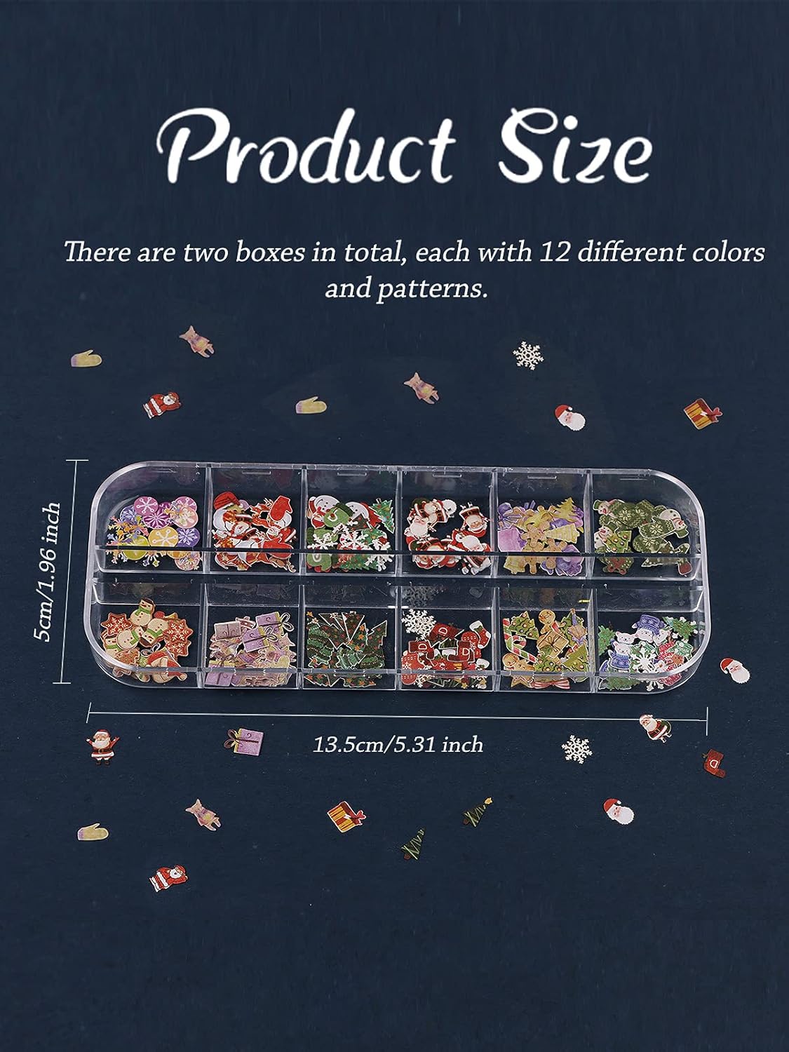 - Christmas Nail Art: You will receive 2 boxes of Christmas Theme wood pulp stickers, each box has 12 different colors and shapes of exquisite patterns, enough to DIY your different Christmas nail art.