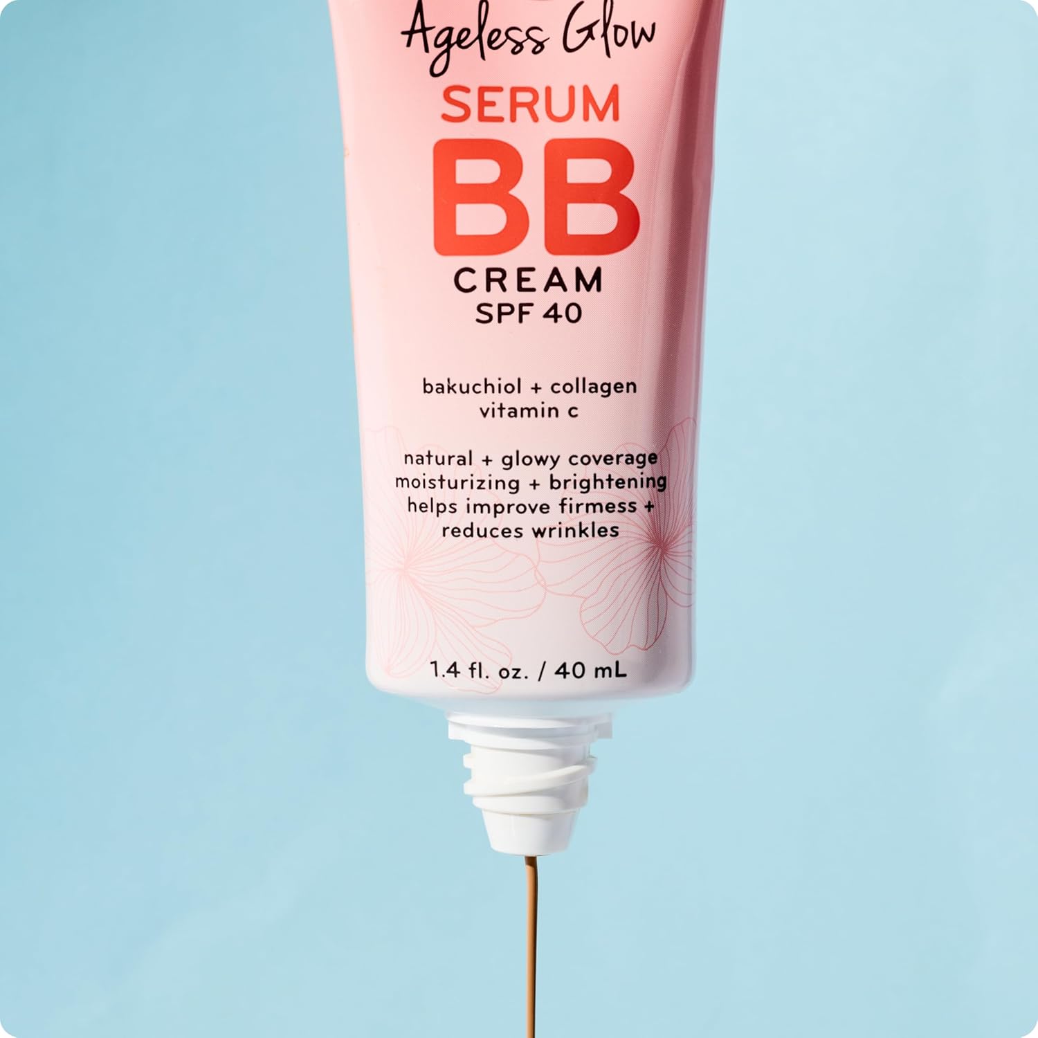 - Natural & Glowy Finish - Natural-looking coverage for a no makeup makeup look. This award-winning bb cream works for all skin types to reduce the signs of aging and improve overall skin health over time. Ageless Glow is a foundation serum and SPF all-in-one.