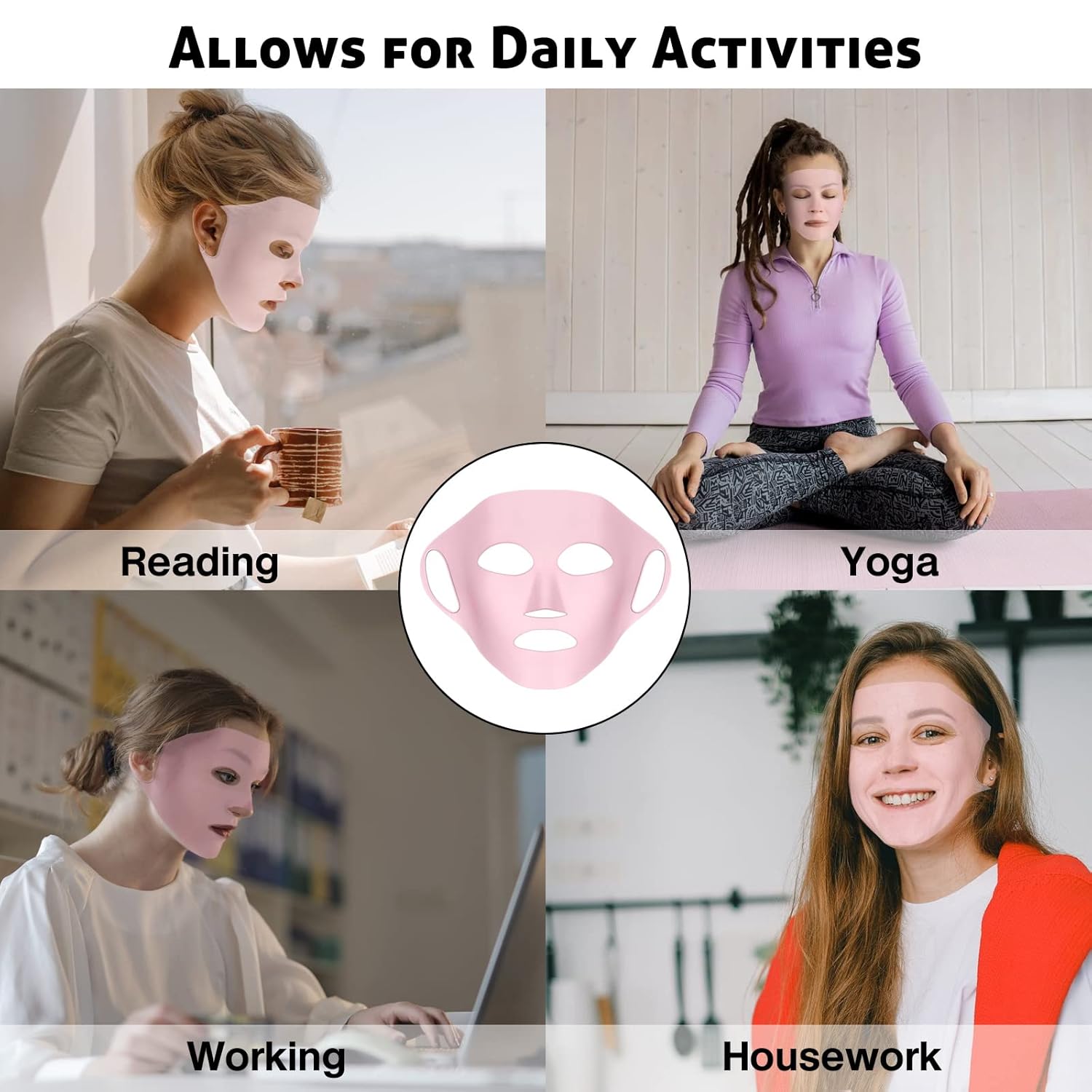 - Locks in Moisturizing Ingredients - Facial Cupping Set for Glowing Skin - Reusable silicone facial mask is a great help to apply the mask. Besides firmly fixing the mask on your face when you walk or work, it also locks the moisturizing essence on the mask to absorb and keep your skin moisturized for a long time. *If there is a difference, the face shape and some details are not very suitable, you can trim it slightly at the ear hook position.