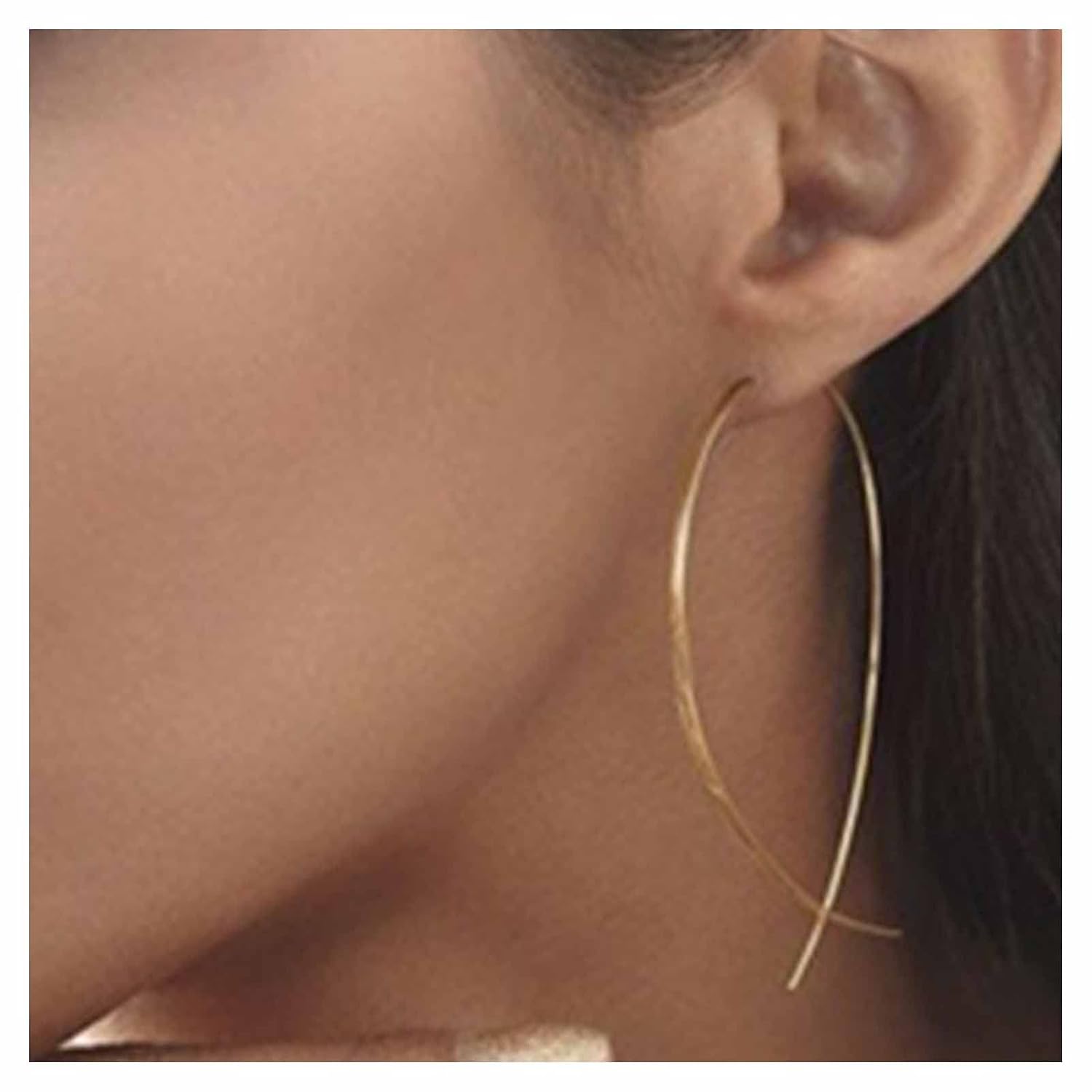 Boho Thin Arch Hoop Earrings Gold Threader Wire Earrings Open Hoop Earrings Minimal Everyday Earrings Jewelry for Women and Girls