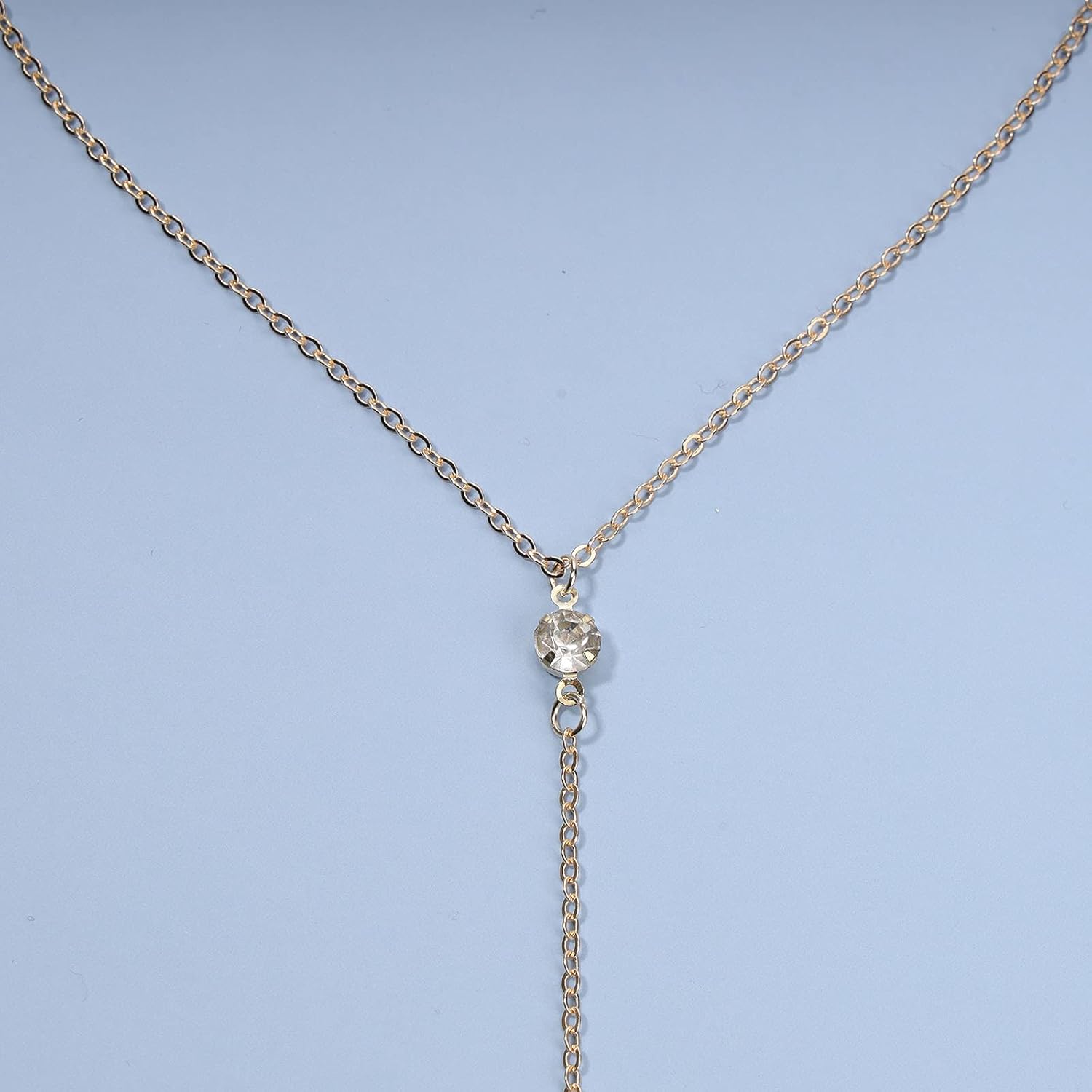 Boho Crystal Y Drop Necklace Choker Gold Long Y Necklace Chain Minimalist Cz Lariat Necklace Classic Simple Y Lariat Necklace Jewelry for Women and Girls Gifts