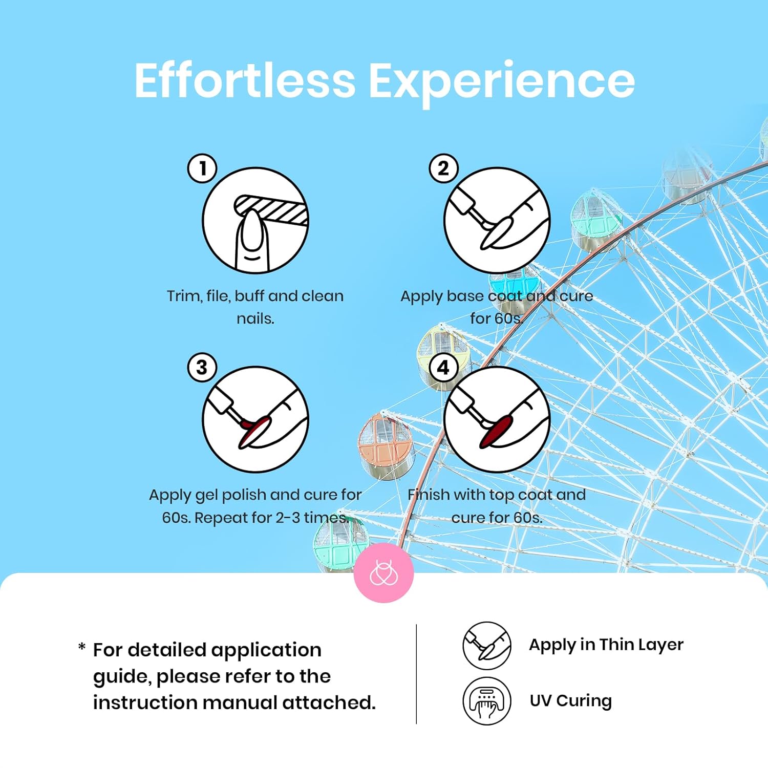 - Included Components : Base Coat, Gel Nail Polish, Gel Polish Organizer, Glossy Top Coat, Instruction Manual, Matte Top Coat Base Coat, Gel Nail Polish, Gel Polish Organizer, Glossy Top Coat, Instruction Manual, Matte Top Coat