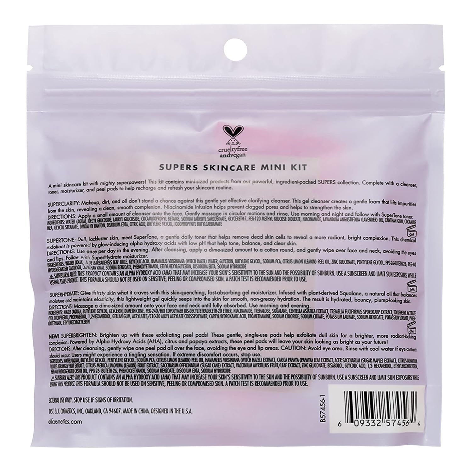 e.l.f. Skin Supers Mini Kit, Skincare Kit With A Toner, Cleanser, Moisturizer & Exfoliating Peel Pads, Brightens, Smooths & Hydrates Skin